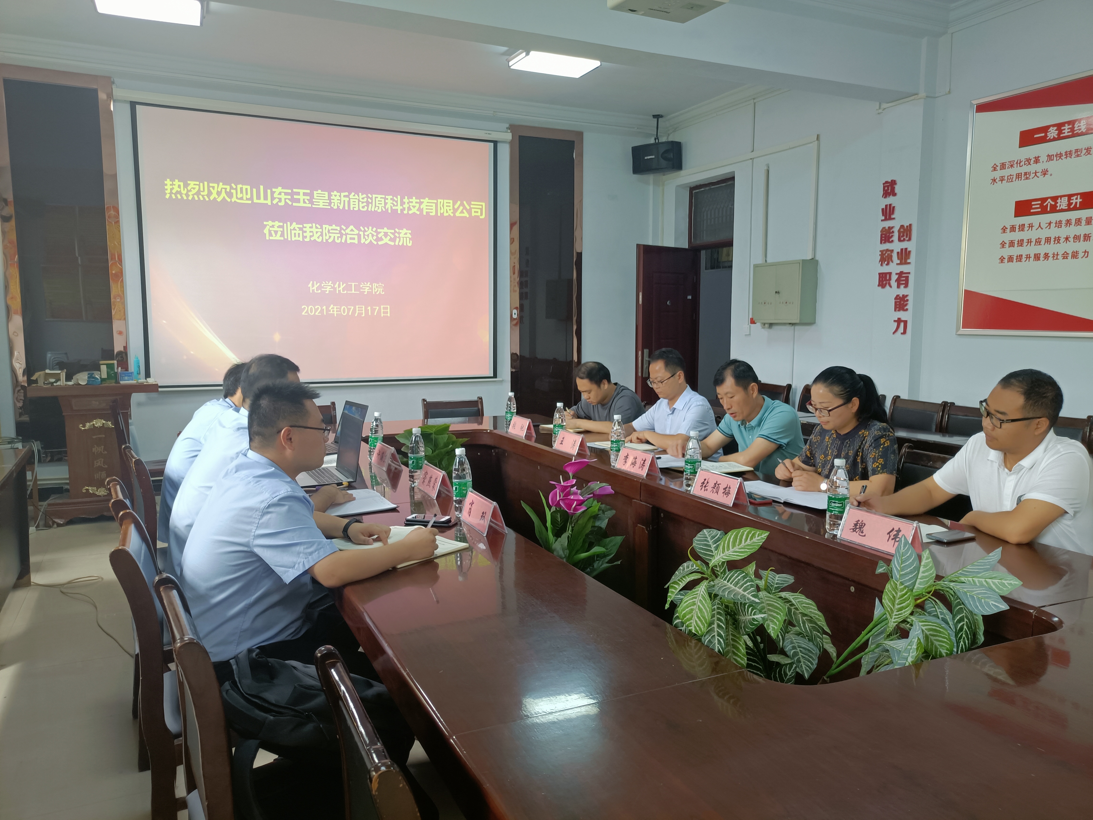 7月17日,山东玉皇新能源科技有限公司副总经理窦燕蒙等一行三人到访beat365英国官网网站,围绕联合科研项目开发、实习实训基地建设等事宜开展洽谈交流。beat365英国官网网站党委书记李海涛、副院长王涛及平台负责人参加会谈,会议由beat365英国官网网站党委副书记张颜梅主持。