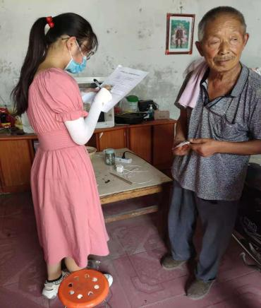 张萃琪帮助独居老人登记信息