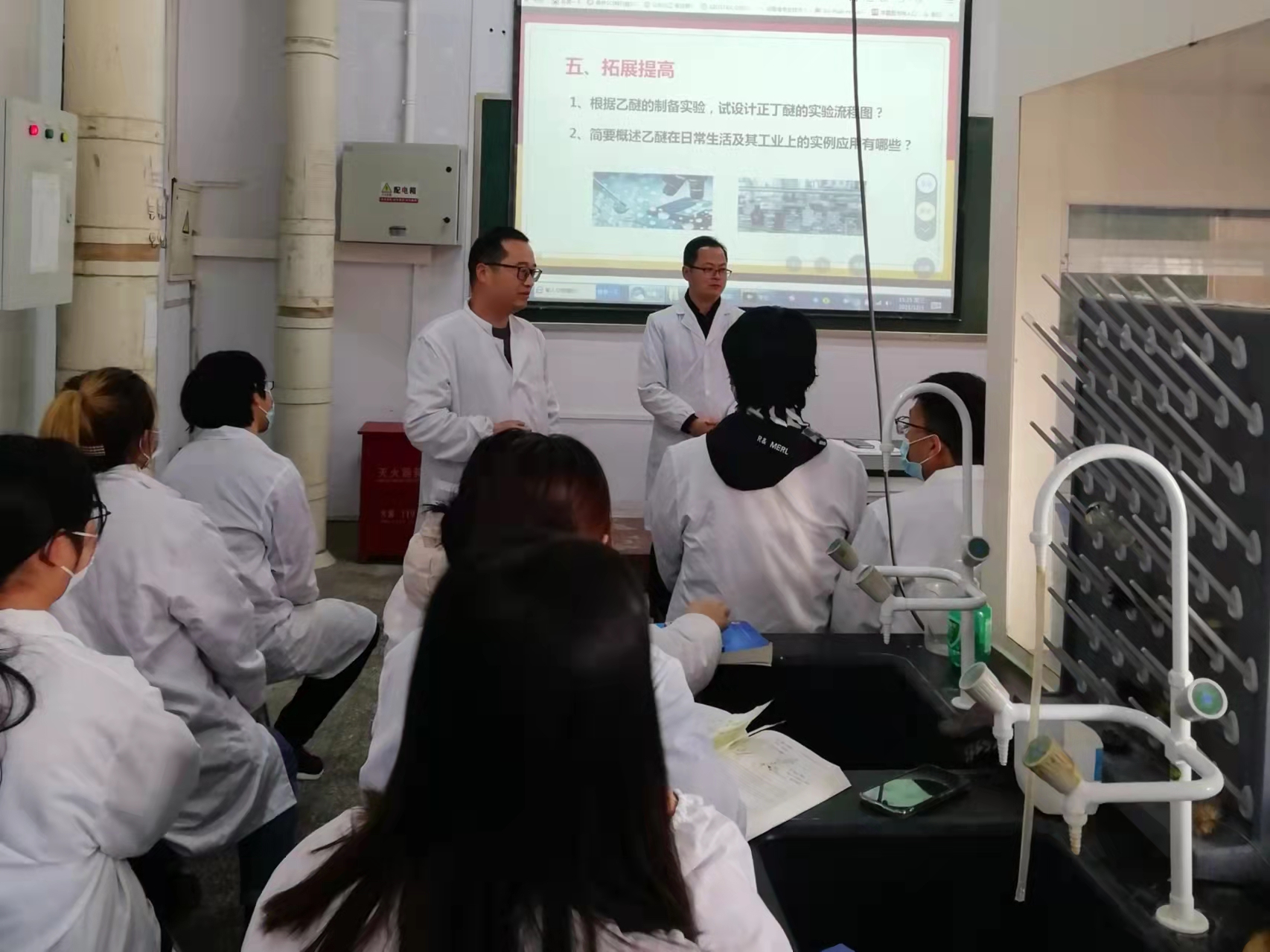 为扎实推进课堂教学范式改革工作,12月01日周三下午第5节课,beat365英国官网网站王涛老师负责的《有机化学实验》课程教学范式改革公开课在睢阳校区化学实验楼407实验室举行。院督导团成员刘新明、课程组任课教师和学院近两年部分新入职青年教师参加了本次观摩活动。