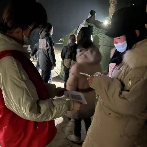 1月11日,天韵队成员根据当地疫情防控的需要和疫情形势,分配好任务,其中一部分成员负责在社区和周围的村庄宣传疫情防控的知识,提醒居民们配戴好口罩、勤消毒,并帮助行动不便的老人搬运物资。另一部分成员在社区卡点值班,他们负责给进出人员测量体温、扫码登记等。经过今天的活动,成员们虽累尤荣,希望用自己微薄的力量,助力强大的抗疫团队。期待疫情早日散去,愿国泰民安。