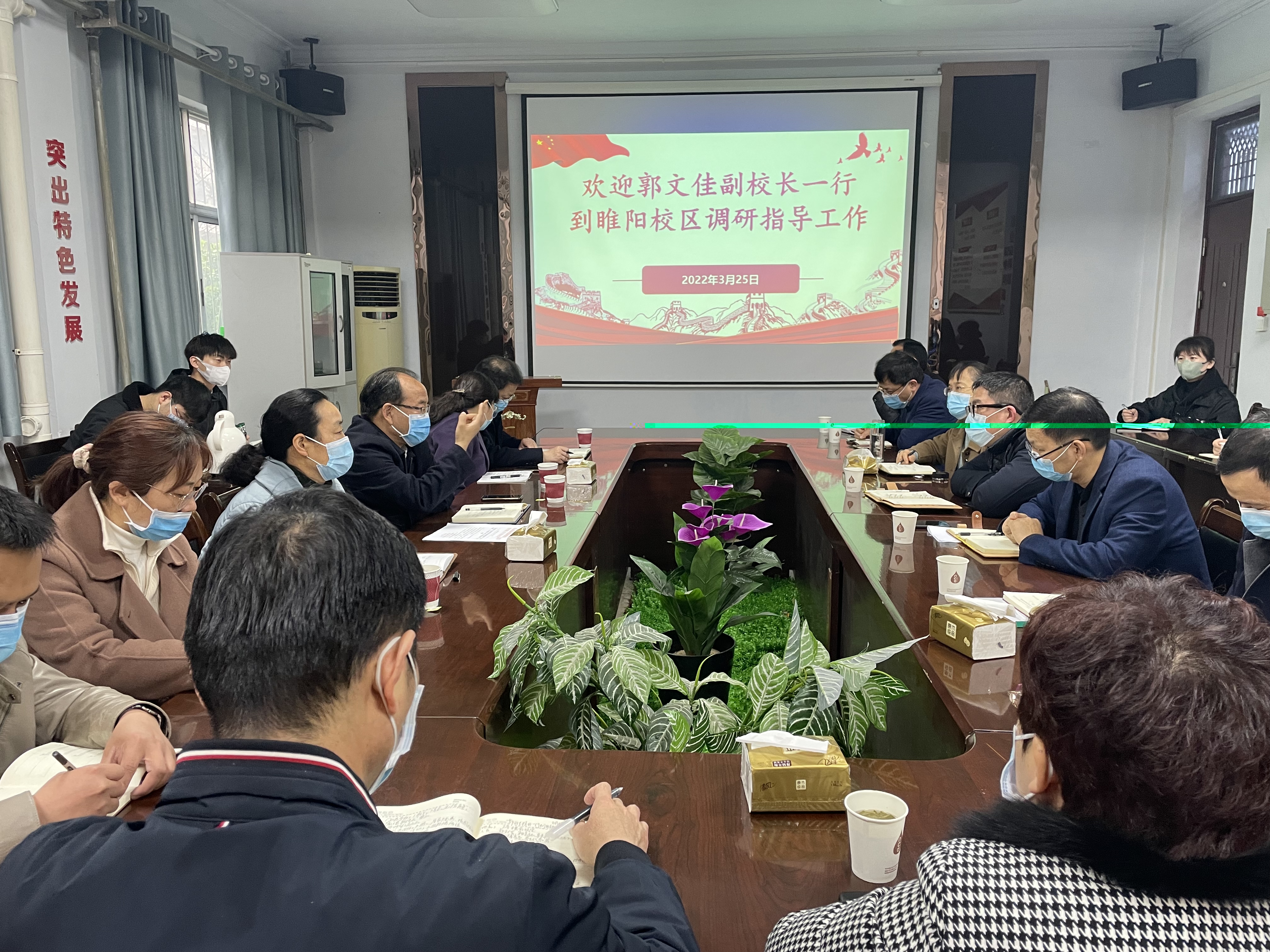 3月25日,学校副校长郭文佳、教务处处长韩桂玲、学生处处长王晓征、实验室建设与管理中心主任赵龙飞等一行到睢阳校区进行考察调研,睢阳校区各学院党政领导班子、辅导员、学生代表参加调研座谈会。
