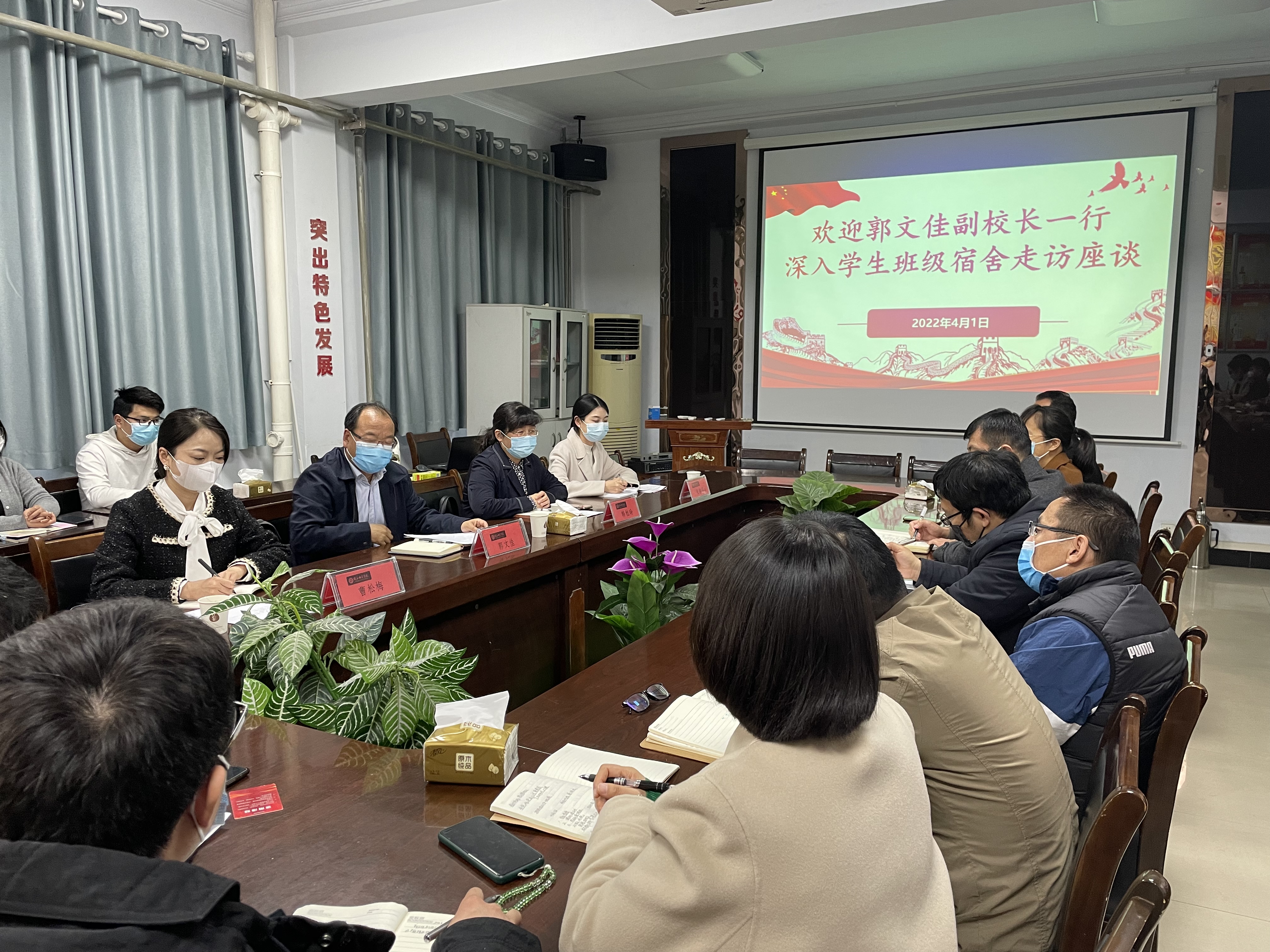 4月1日下午,副校长郭文佳带领教务处、教学评价与教师发展中心、校团委有关同志到beat365英国官网网站开展深入学生班级宿舍调研座谈活动。学院领导班子成员、教师代表、学生代表参加调研座谈会。座谈会由beat365英国官网网站党委书记李海涛主持。