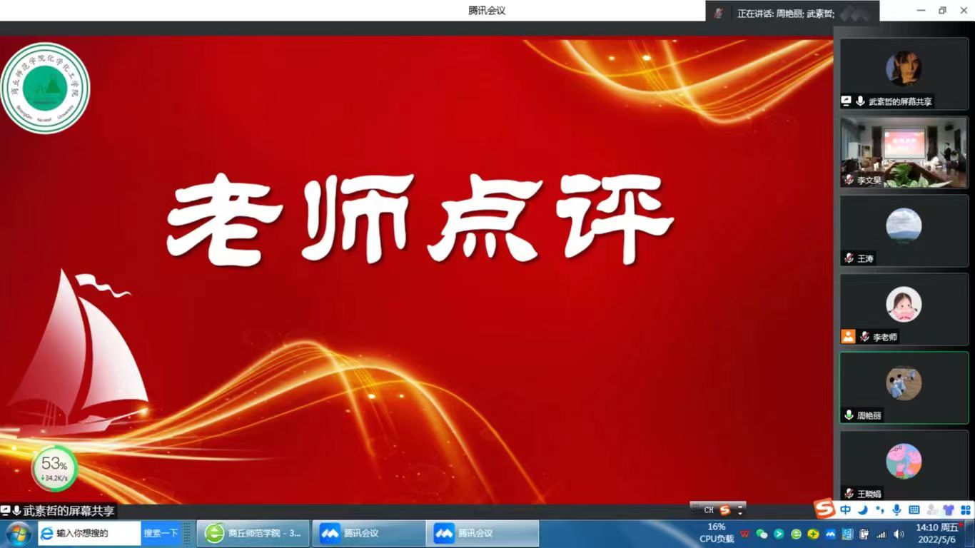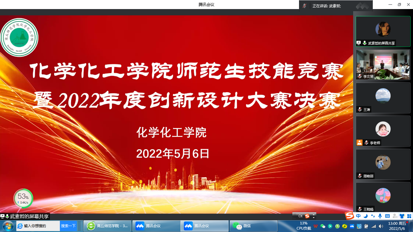 为提升化学师范生教育教学能力,提高PPT创新设计能力,5月6日,beat365英国官网网站于睢阳校区7#104会议室举行了化学专业师范生技能竞赛暨2022年度PPT创新设计大赛决赛。院党委副书记张颜梅、副院长周艳丽、副院长王涛及专业评委老师出席本次活动。