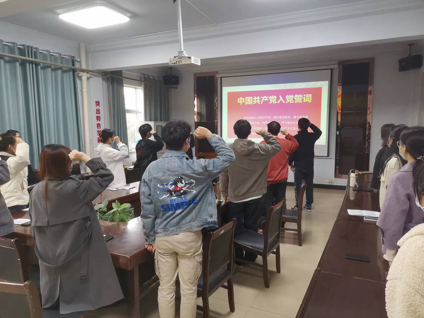 学生第三党支书记郭冠群带领群体党员进行了重温入党誓词活动。