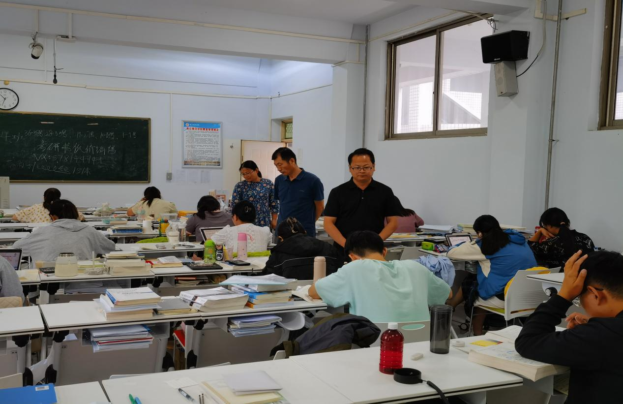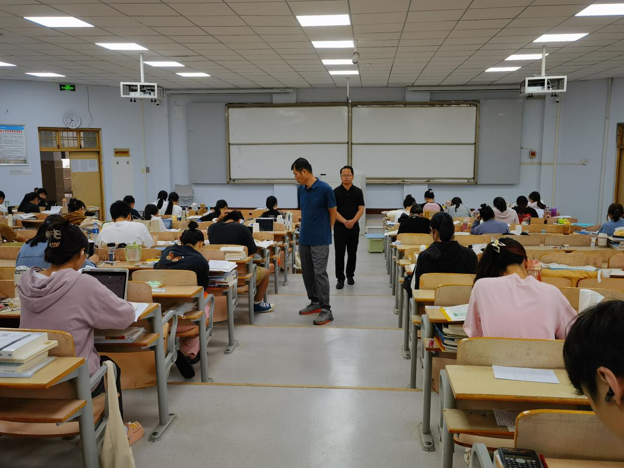 为全面掌握学院暑期留校学生的思想、学习和生活状况,筑牢暑期留校学生的安全防线,帮助考研学生树立考研信心和决心。7月30日,beat365官网党委书记李海涛、副书记张颜梅、副院长王涛等一行于1号教学楼203、204、205、206考研教室走访慰问2020级留校考研学生。