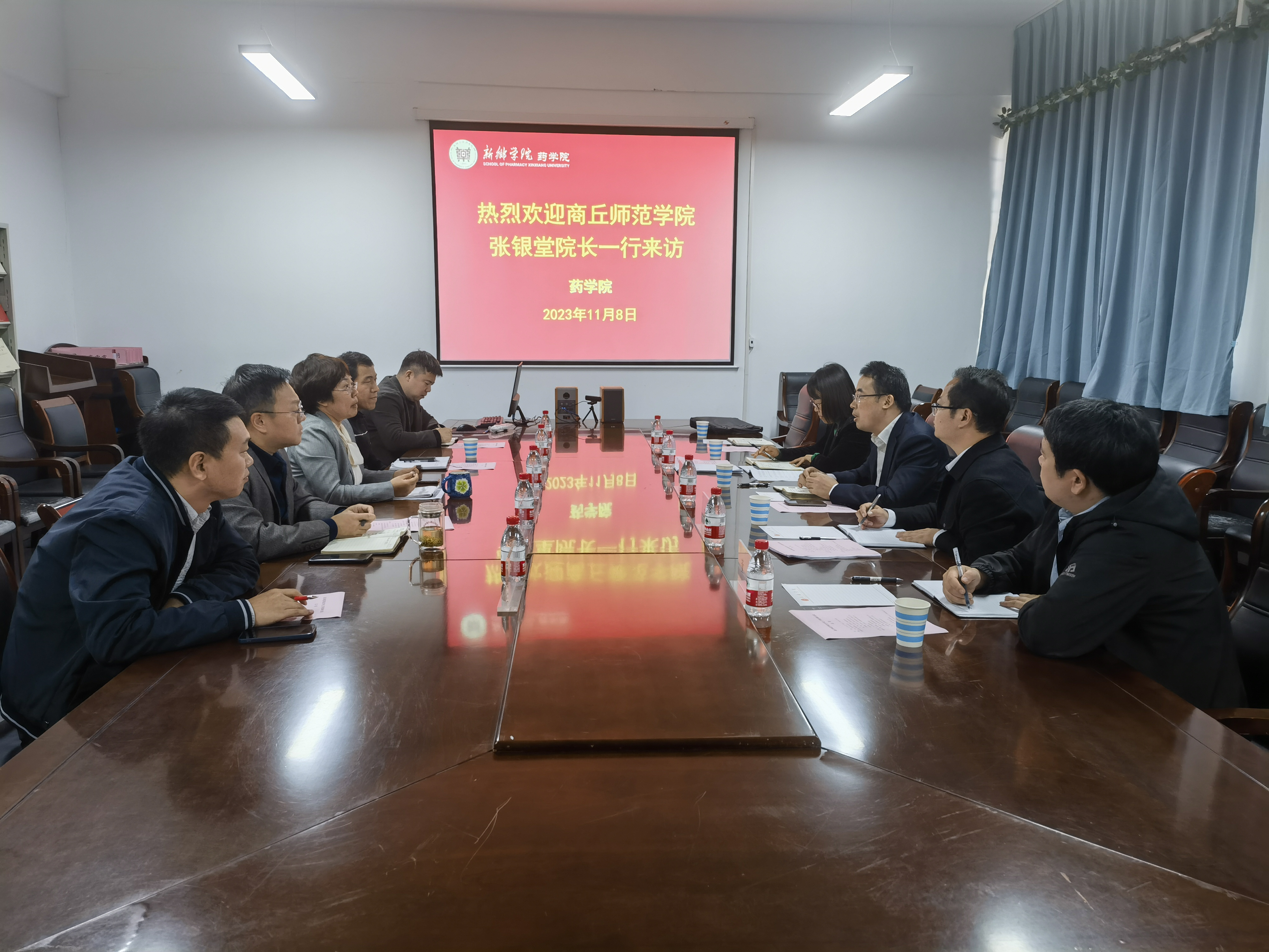 会上,双方分别介绍了学院的教学科研情况及近年来取得的办学成就。大家接着对国家一流专业建设、人才培养方案制定、审核评估、教科研管理、产业学院建设、青年教师培养、实验室管理等双方共同关心的问题进行了热烈的交流。会后,参观了GMP车间实训中心、分析测试中心和科研实验室等实验实训场所。
