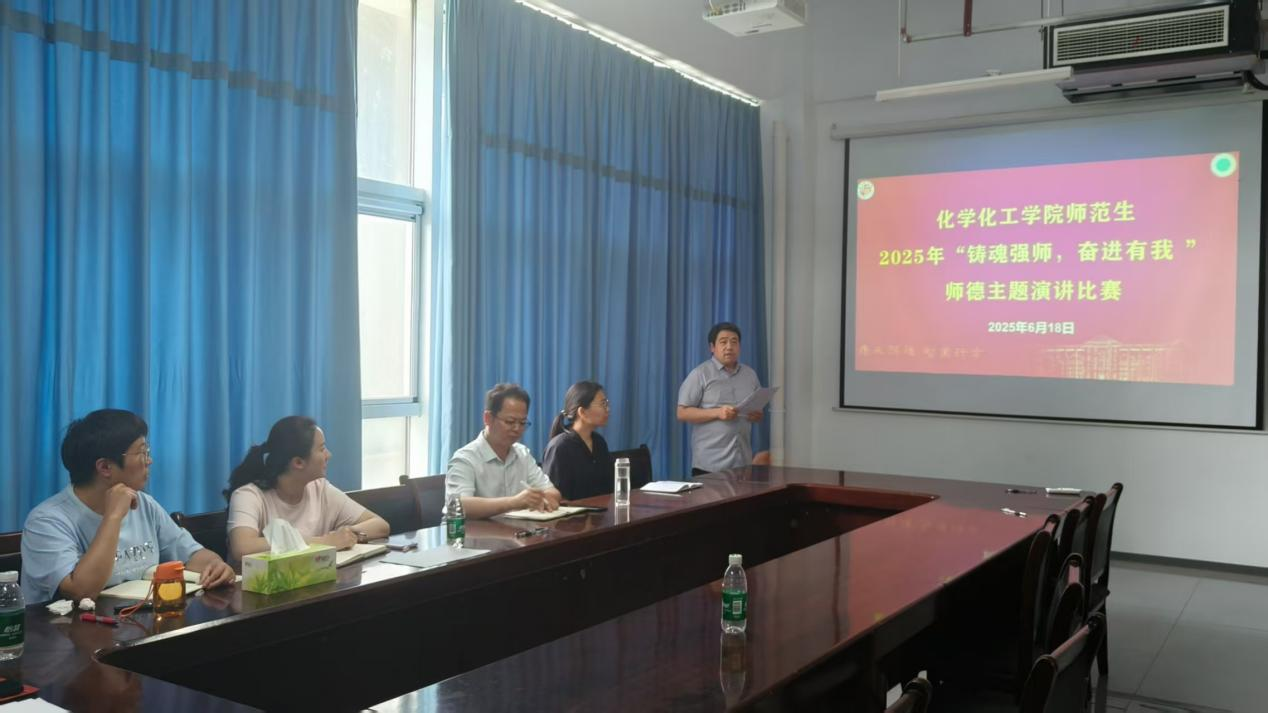 为深化师德师风建设,推动师范生树立育人使命,6月18日,beat365英国官网网站在工科实训楼 B308会议室开展“铸魂强师,奋进有我”师德主题演讲比赛,副院长王涛、各年级辅导员及化学系骨干教师参与本次活动并担任评委。活动由化学系主任董辉主持。