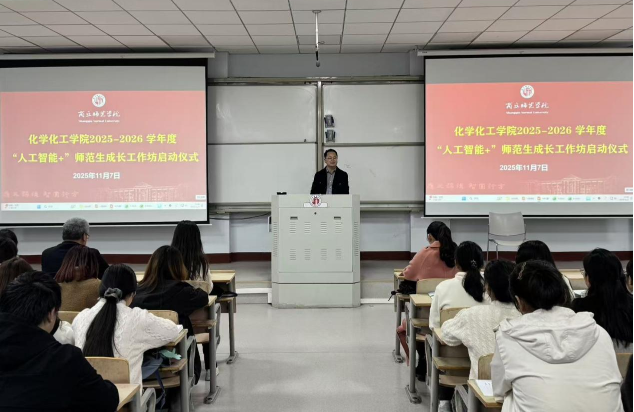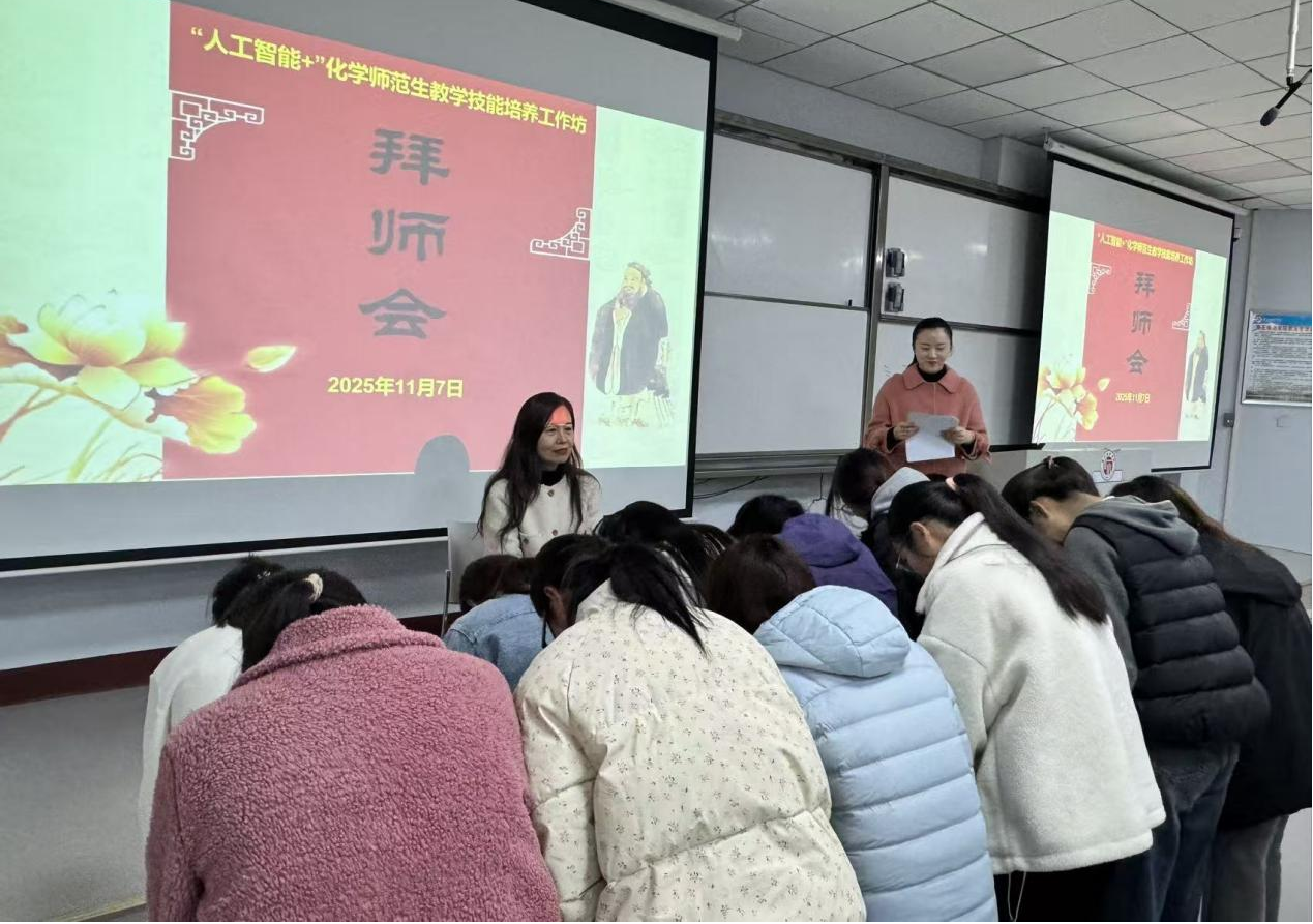 为进一步提升师范生实践能力与教育教学能力,11月7日,beat365英国官网网站在睢阳校区1号教学楼208教室举行了2025-2026学年度“人工智能+”师范生成长工作坊启动仪式。来自商丘市基础教育研究中心、商丘市第一高级中学、商丘市高级中学的5名中学化学一线名师,副院长王涛,化学系副主任刘孜,教师代表及2023级全体师范生参加了会议。