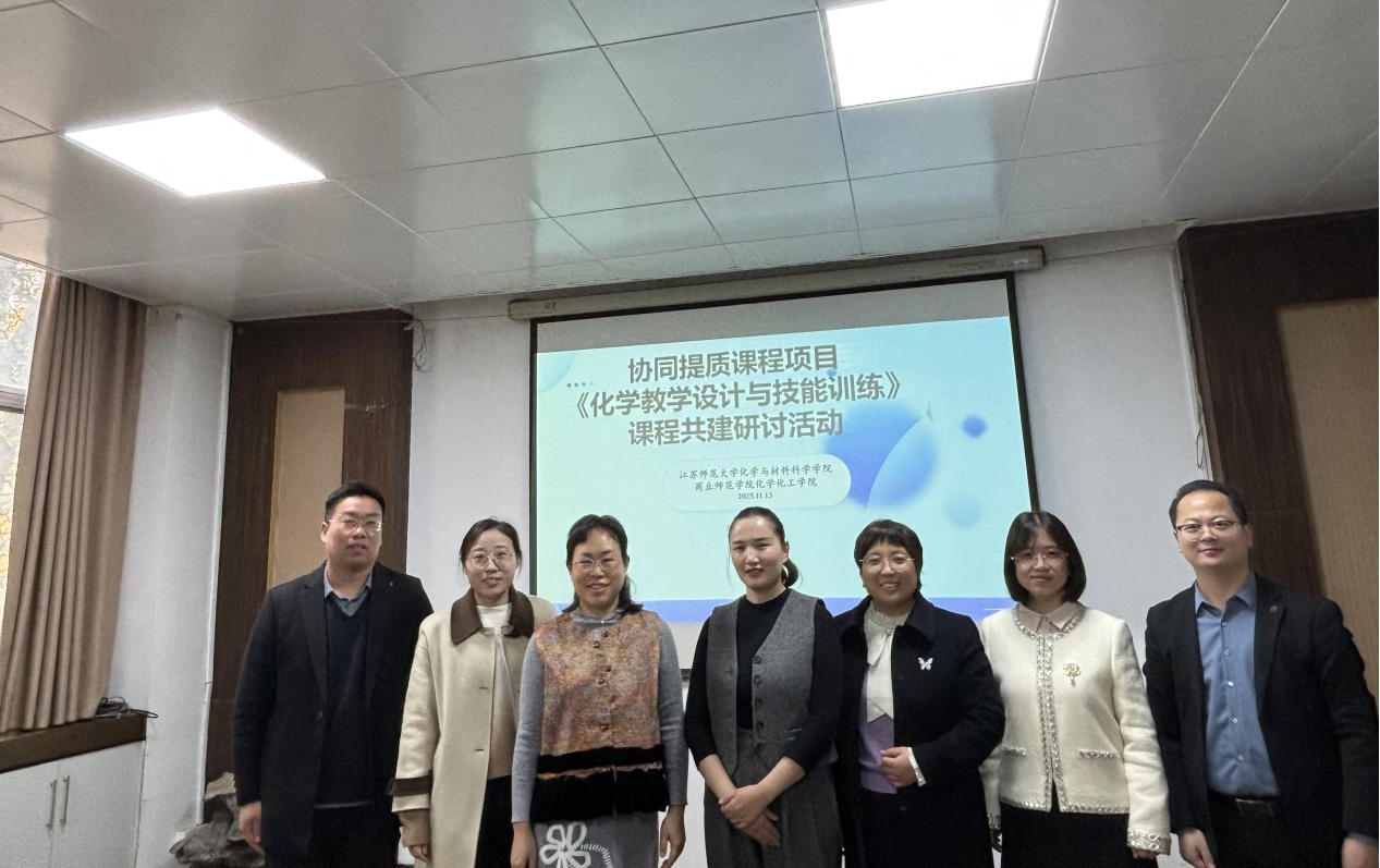 2025年11月13日,江苏师范大学化学与材料科学学院与beat365英国官网网站协同提质项目《化学教学设计与技能训练》课程共建研讨活动圆满举行。江苏师范大学化学与材料科学学院副院长刘建全、beat365英国官网网站副院长王涛,以及双方学院学科教学论骨干教师共同参与了此次研讨活动。