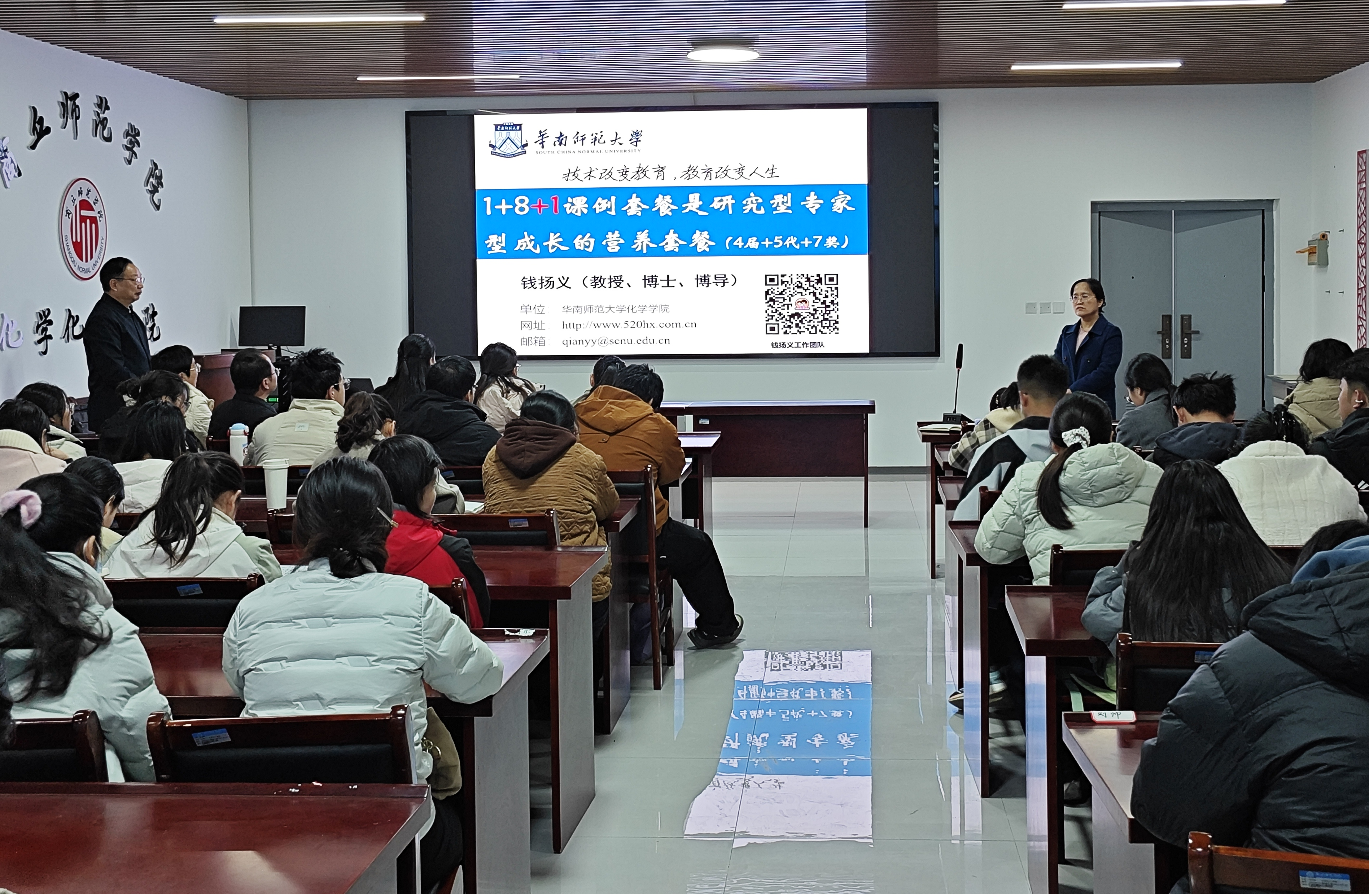 2025年11月27日,应beat365英国官网网站邀请华南师范大学钱扬义教授在工科实训大楼B309会议室作了一场题为“手持技术数字化化学实验1+8+1课例套餐开发与实践--化学师范生成为研究型专家型教师成长路径”的专题报告。报告会由院长周艳丽主持。