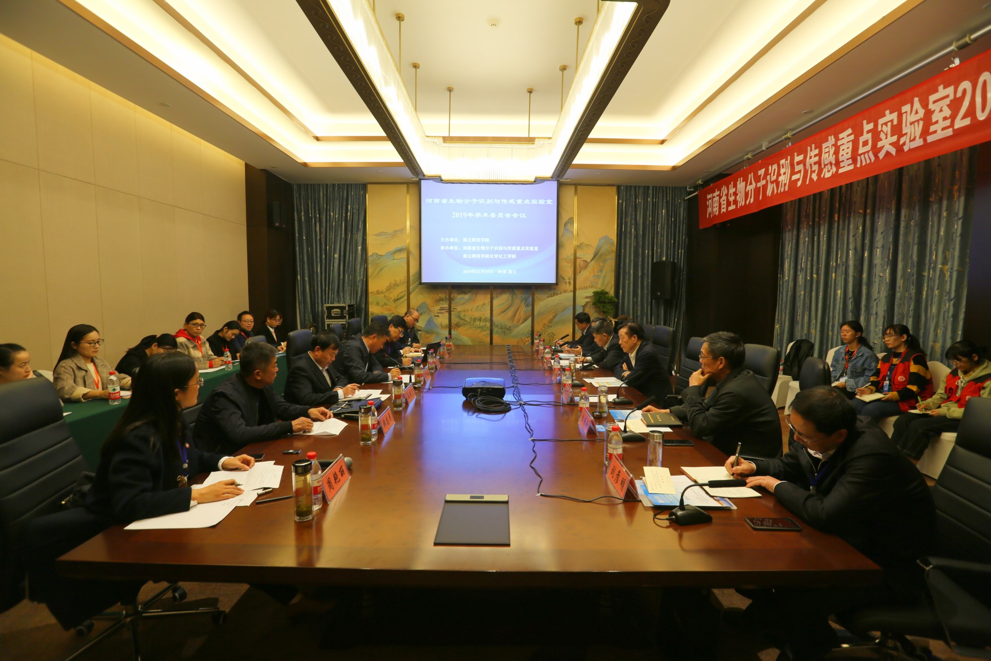 11月15日,河南省生物分子识别与传感重点实验室2019年学术委员会会议在商丘召开。南京大学陈洪渊院士,清华大学张新荣教授,南京大学鞠熀先教授,郑州大学冶保献教授、张书胜教授,信阳师范学院刘彦明教授,beat365英国官网网站徐茂田教授等学术委员会委员出席了会议。beat365英国官网网站校长司林胜、副校长薛明志出席会议。beat365英国官网网站党政领导、重点实验室科研骨干以及部分研究生代表参加会议。会议由重点实验室学术委员会主任陈洪渊院士主持。