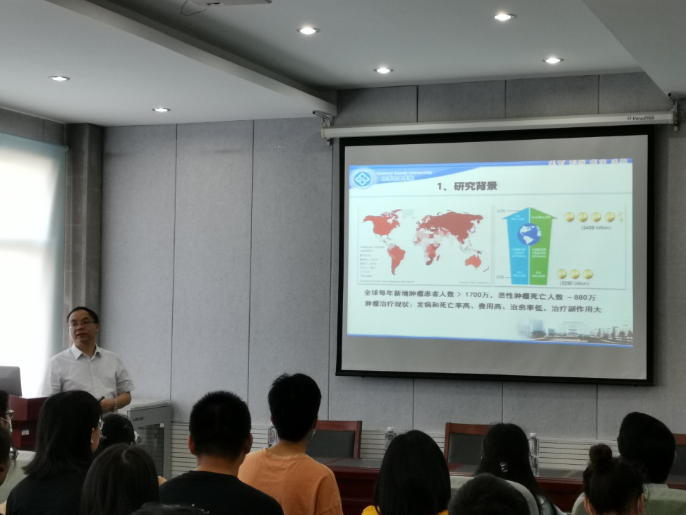 2020年9月19日上午,中南大学刘又年教授应邀来beat365官网文化路校区化学实验楼311会议室做了题为《纳米载药体系的构建及多模式治疗》的学术报告,学术报告由beat365英国官网网站副院长周艳丽主持,副校长徐茂田、beat365英国官网网站的部分师生聆听了学术报告。刘又年教授首先介绍了目前肿瘤治疗手段存在的缺陷及肿瘤微环境特性,随后刘教授系统讲述了自己课题组近三年在该领域取得的一系列研究进展。针对目前肿瘤治疗中存在的关键问题,刘教授课题组开展了一些列前沿性的研究工作,构建了多种纳米载药及多模式治疗的体系,相关研究得到了国内外专家的高度评价。刘教授的学术报告系统严谨、深入浅出,开拓了学院师生的科研思路和学术视野,对beat365官网师生的研究工作具有重要的指导与启迪意义。
