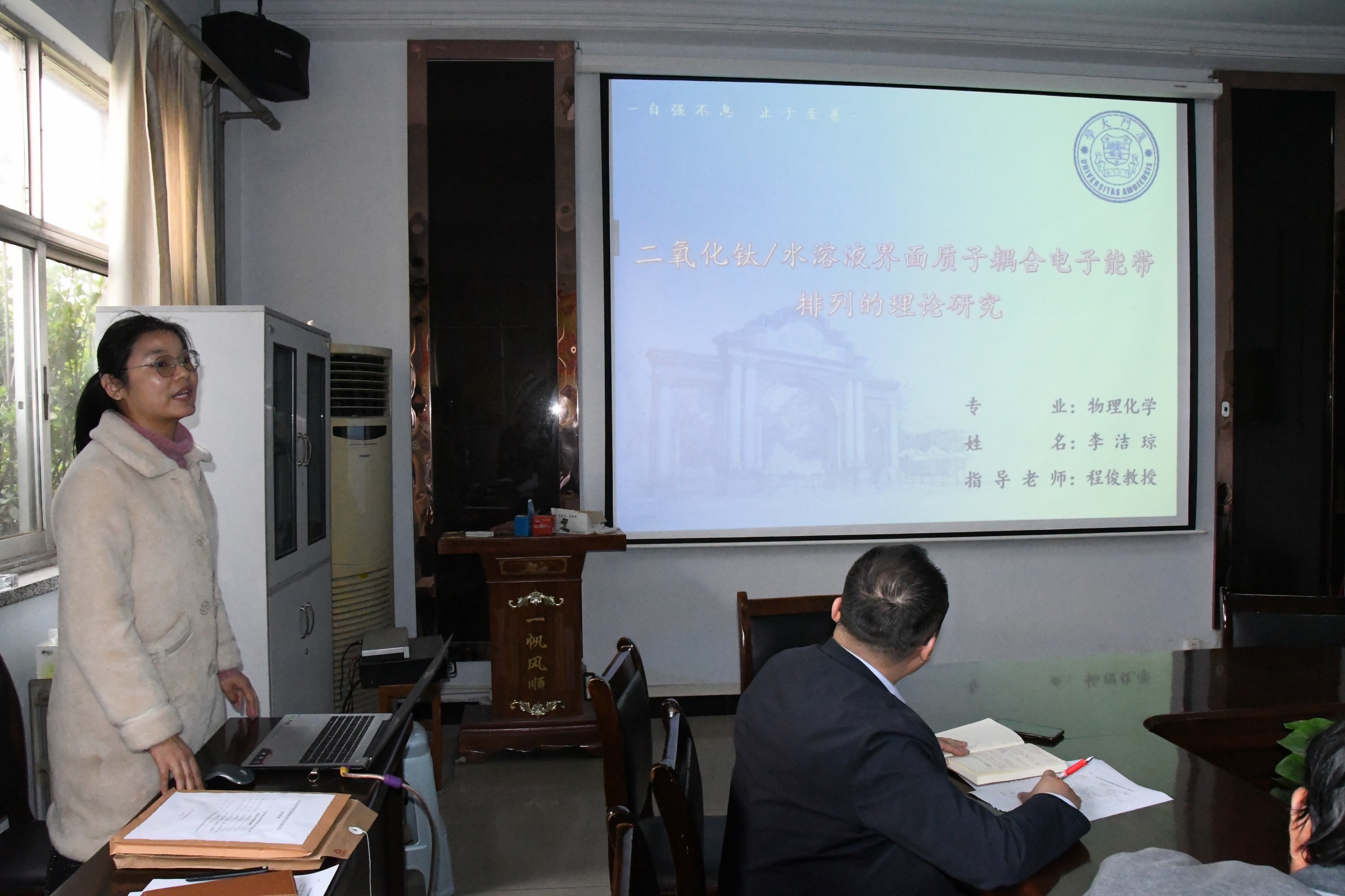 2021年03月05日下午,beat365英国官网网站进行了本学期第一期博士论坛。青年教师李洁琼博士在睢阳校区7号楼beat365英国官网网站一楼会议室做了题为《二氧化钛/水溶液界面质子耦合电子能带排列的理论研究》的学术报告。本次博士论坛由副院长周艳丽主持,beat365英国官网网站全体教师参加了论坛。