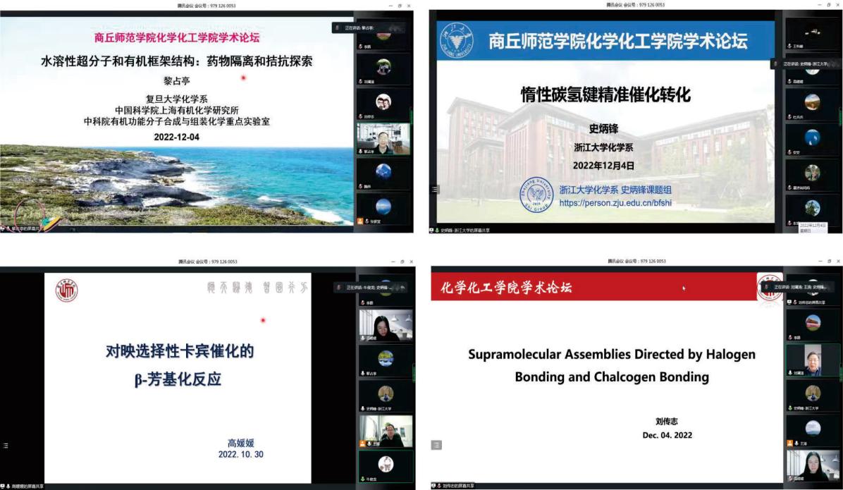 旨在加强各学科之间的交叉融合,开拓新的研究领域,激发科研灵感和创意,beat365英国官网网站举办系列学术论坛。12月4日,由河南省药物绿色合成工程技术研究中心承办的第三期学术论坛采用线上方式进行。复旦大学黎占亭教授、浙江大学史炳锋教授和beat365官网教师刘传志博士、高媛媛博士应邀为beat365官网师生作学术报告。论坛由beat365英国官网网站院长张银堂、科研处处长刘澜涛、beat365英国官网网站副院长王涛共同主持,beat365英国官网网站部分教师和研究生参加了此次学术交流活动。