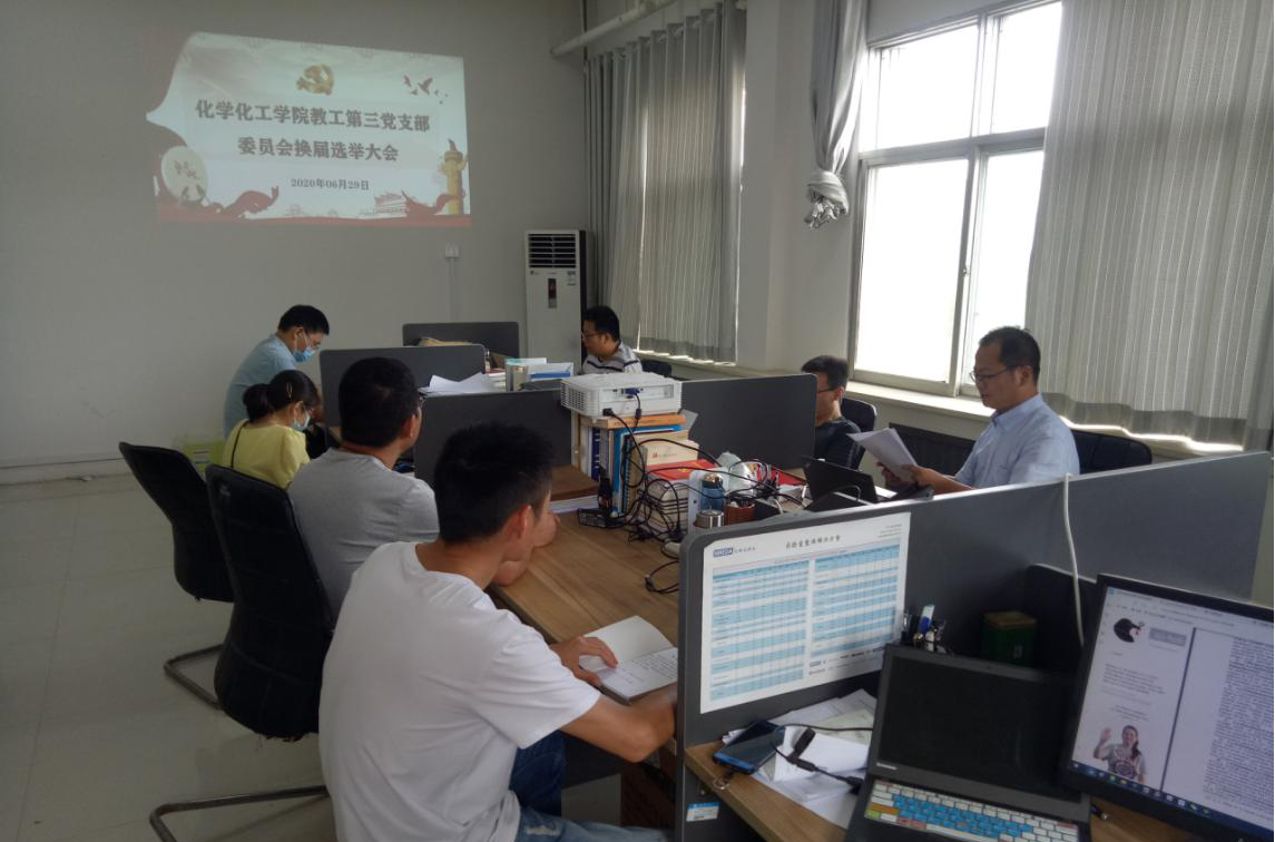 根据《中国共产党章程》、《中国共产党基层组织选举工作暂行条例》等规定,beat365英国官网网站教工第三党支部本届委员会届期已满,按照学校党委的要求,经beat365英国官网网站党总支同意,2020年6月29日上午,beat365英国官网网站教工第三党支部在化学实验楼416室召开换届选举大会,会议由原支部书记王涛主持,党支部全体党员参加会议。