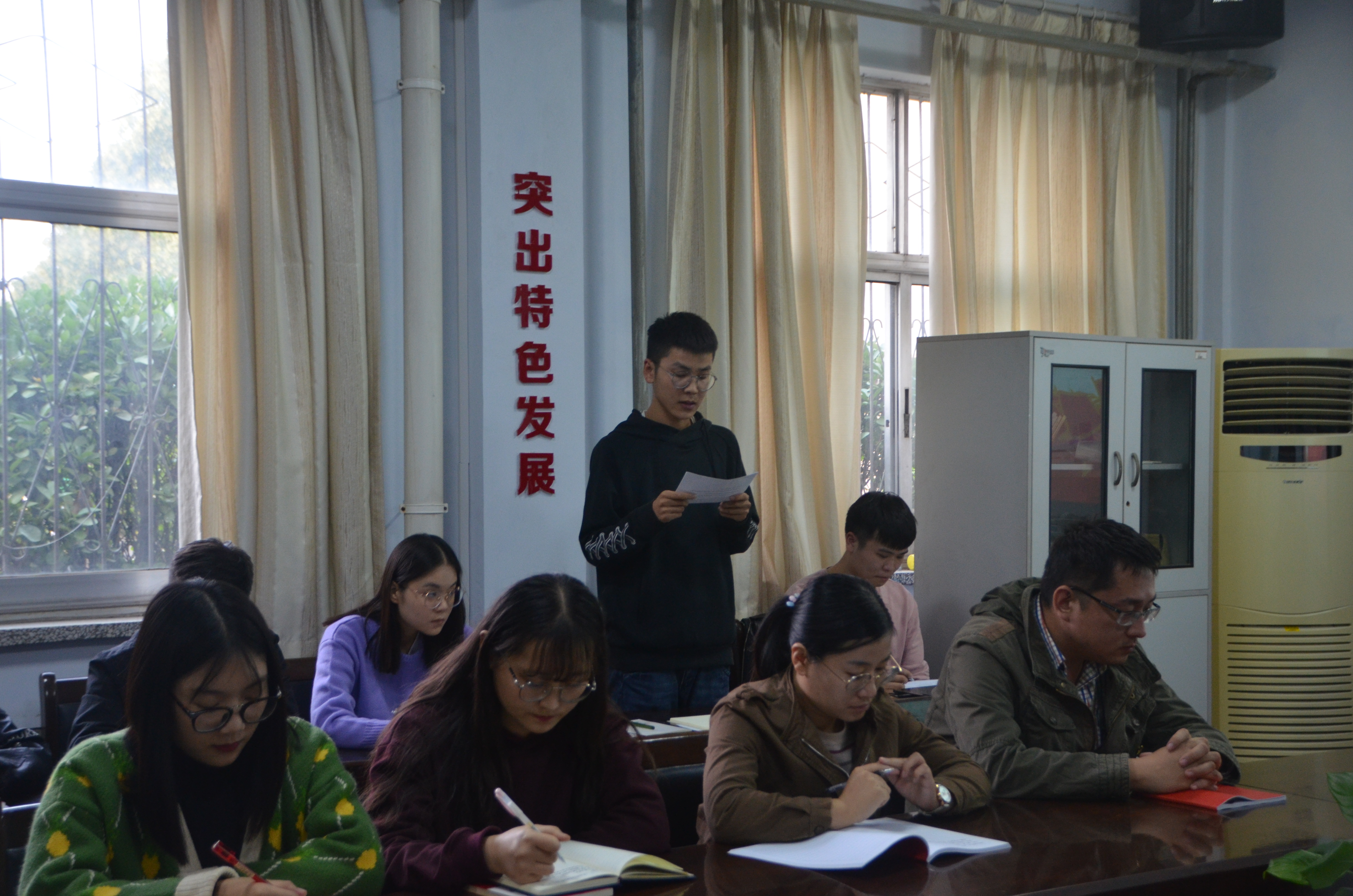 仪式第一项为全体人员奏唱国歌,全场庄严肃穆,仪式在激昂的国歌奏乐中拉开了帷幕。第二项由韩忠民宣读了培训计划与考核规章制度,并向参训学员提出了两点希望,一是要端正学习态度,严格遵守培训纪律,增强思想政治素质;二是要深入学习,提高认识,树立正确理想信念。第三项由参训入党积极分子代表上官鑫锋同学发言,他代表学员承诺:“会珍惜这宝贵的培训机会,遵守培训纪律,通过学习实践,努力提高政治理论修养,端正入党动机,时刻牢记全心全意为人民服务的宗旨, 时刻以党员的标准严格要求自己,争取早日成为一名光荣的共产党员,肩负起时代赋予的历史使命。