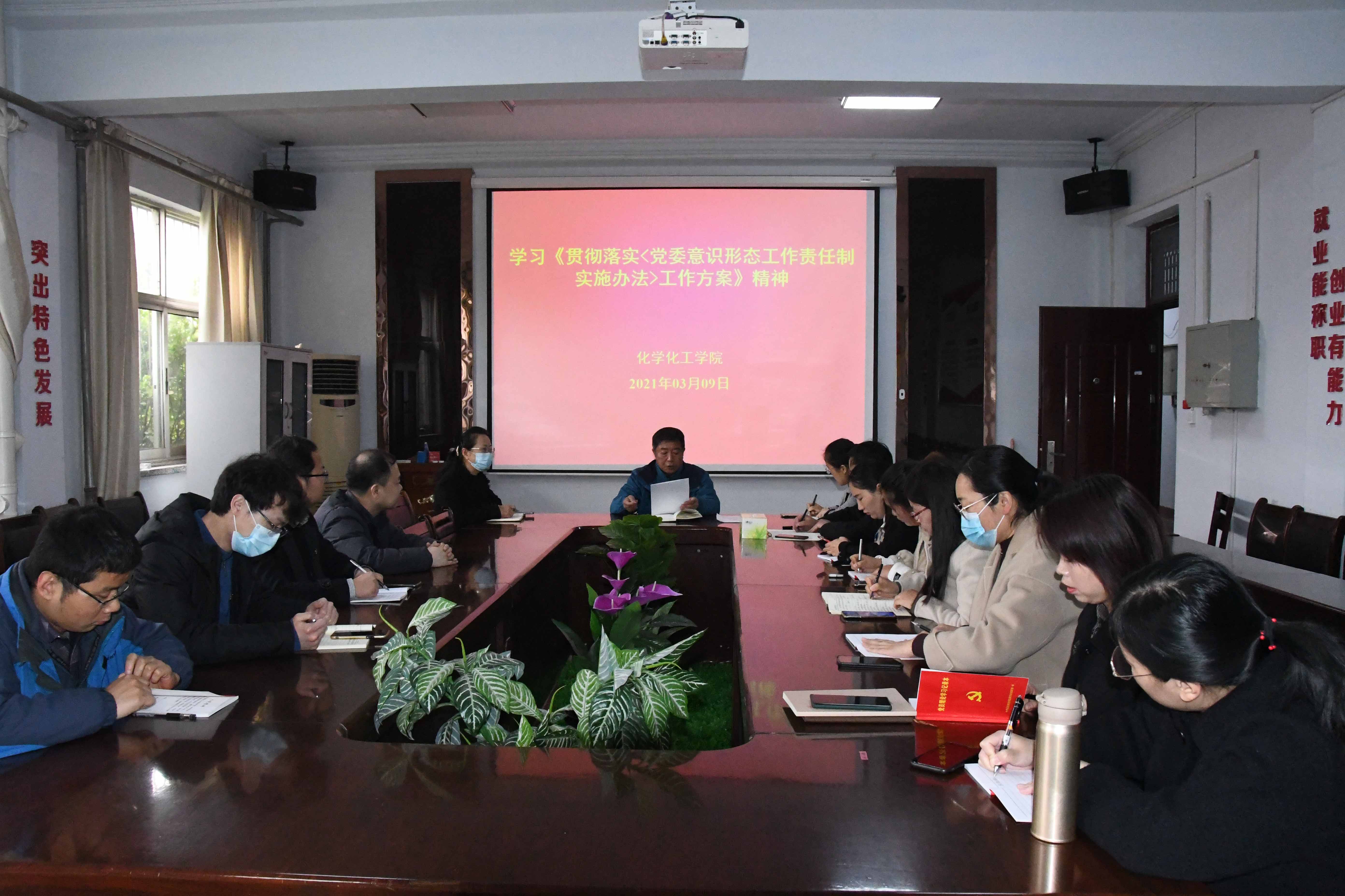 会上,韩忠民传达了学校《贯彻落实<党委意识形态工作责任制实施方法>工作方案》(商师党发[2021]10号)的通知。韩忠民希望广大党员、教职工提高政治站位,把习近平总书记的重要讲话学深悟透,要高度重视《方案》中的六项重点任务,把《方案》实施与学院各项工作任务结合贯通、相互促进。