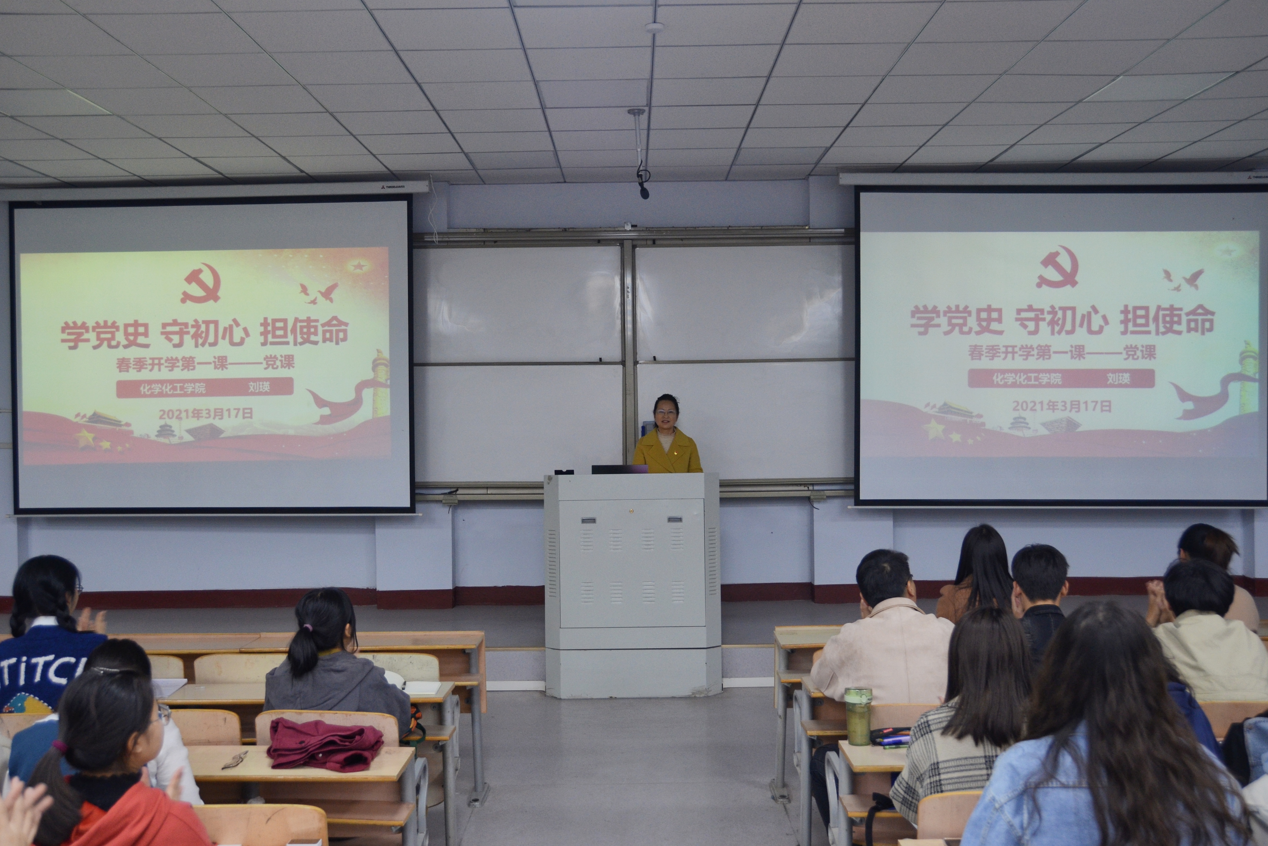 为深入学习贯彻习近平总书记在党史学习教育动员大会上的重要讲话精神,使同学们认真学习党史,坚守初心,勇担使命,3月17日晚,beat365英国官网网站于睢阳校区1号楼107教室开展“学党史,守初心,担使命”春季开学第一课——党课,beat365英国官网网站党总支副书记刘瑛主讲,团总支副书记郭家瑞、学生工作办公室副主任史展、19级辅导员李宁娅、学生党员代表、全体20级学生参加。