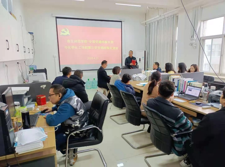 为充分发扬beat365官网“全国党建样板支部”的引领、辐射、带动作用,2020年4月12日,在支部书记魏伟的带领下,全体支部党员与beat365英国官网网站教师第三党支部展开了经验交流活动。第三党支部书记王涛和全体党员参与了交流会。