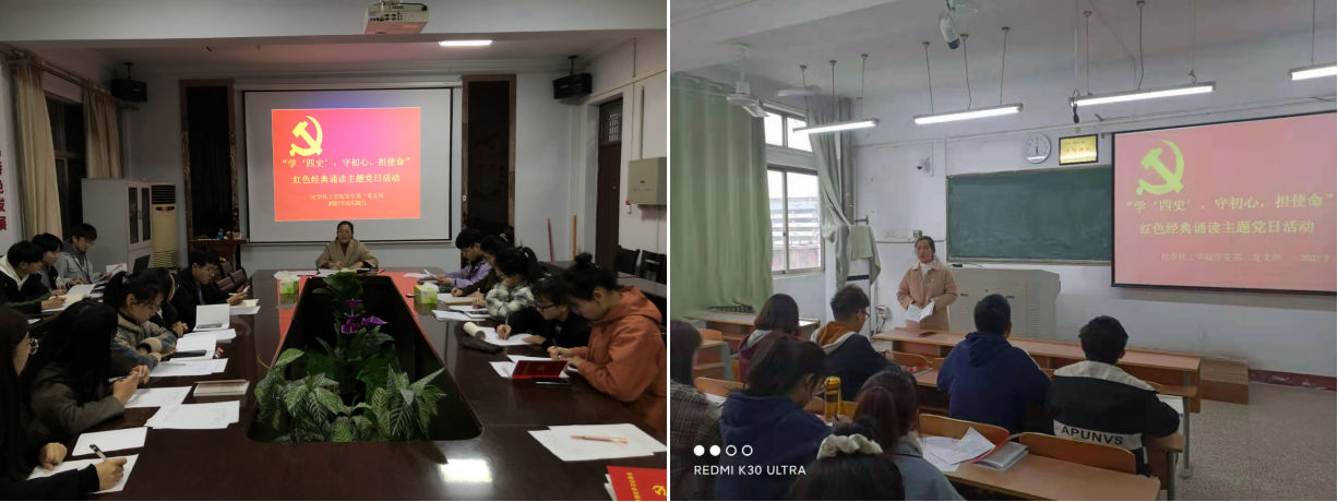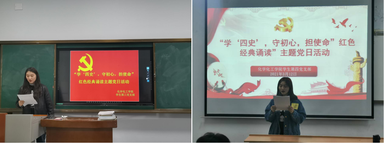 为深入贯彻落实习近平总书记关于党史、新中国史、改革开放史、社会主义发展史学习和指示精神,持续深化爱国主义教育。3月12日至23日,beat365英国官网网站学生党支部开展了“学‘四史’守初心,担使命”红色经典诵读主题党日活动。该活动由学生支部书记主持,全体学生党员参加。