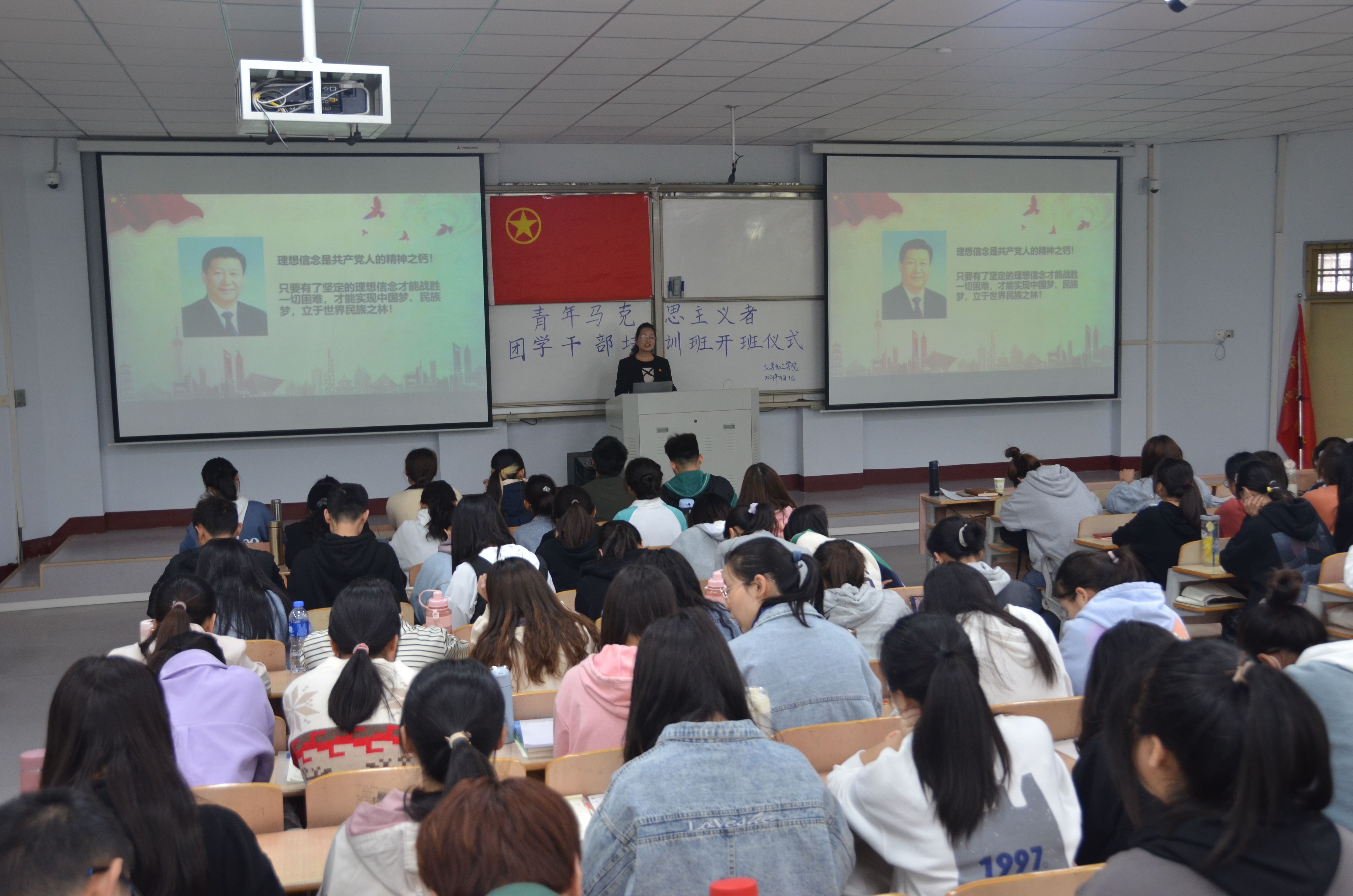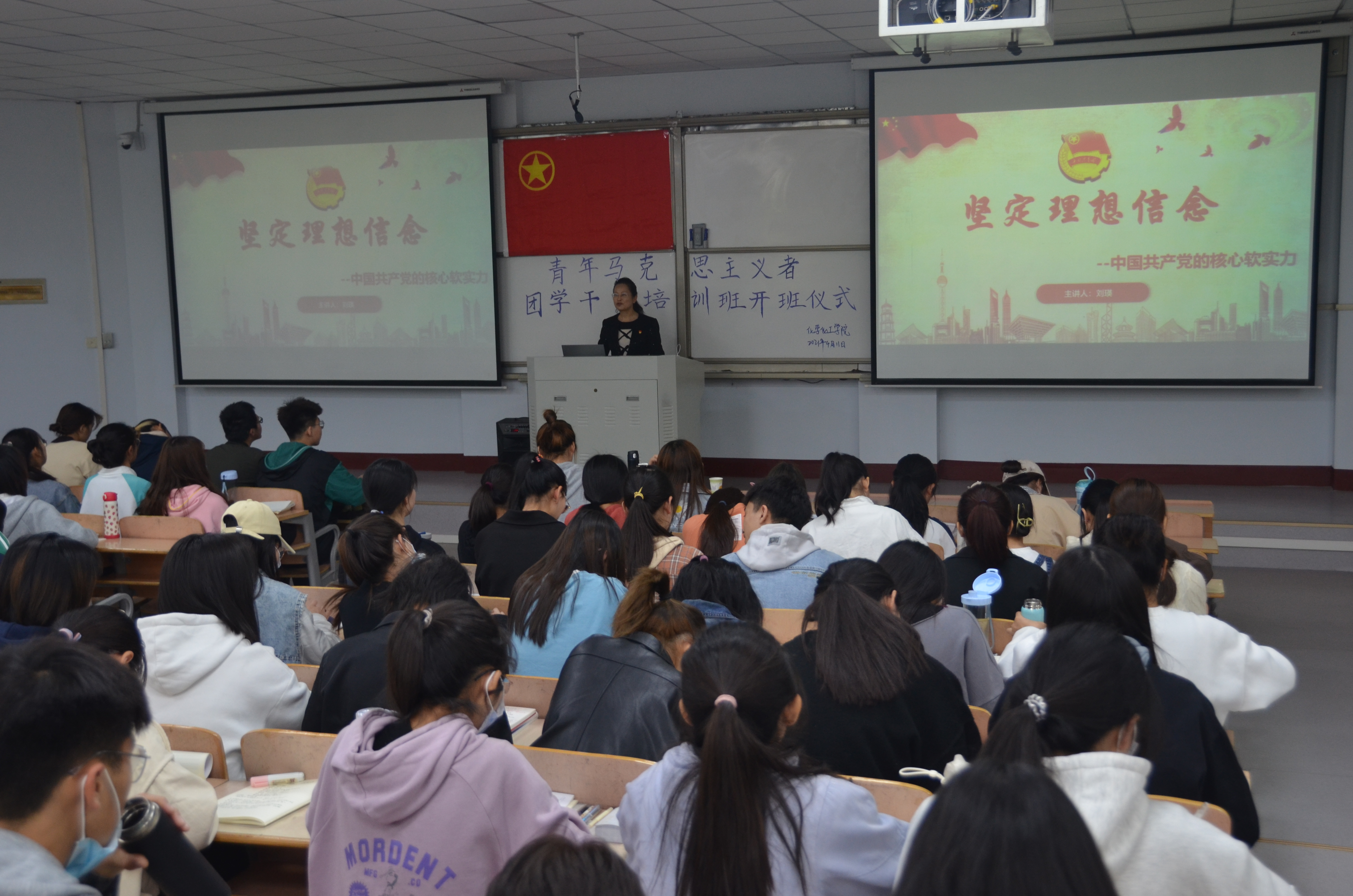 会上,刘瑛从理想信念的含义与特征进行讲解,阐述了理想信念的基本特点,使学生们深刻了解到坚定理想信念的重要意义。刘瑛强调,坚定理想信念是当代大学生成长的精神支柱,要牢牢把握理想信念的三大功能,只有加强理想信念教育,才能够树立高尚的道德情操。最后,刘瑛要求学员们要在实践锻炼中坚定理想信念,通过不断地实践,让自己逐渐坚定自己的理想信念。