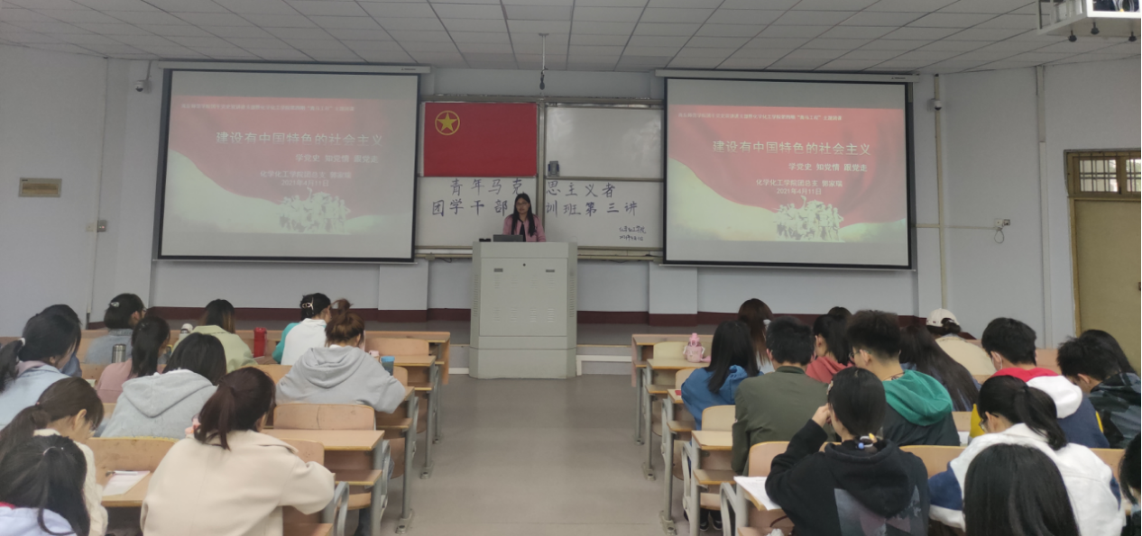 4月11日,beat365英国官网网站于睢阳校区1号教学楼207教师开展“beat365英国官网网站团干党史宣讲进支部暨beat365英国官网网站第四期“青马工程”主题团课(三)——建设有中国特色的社会主义”。beat365英国官网网站团总支副书记郭家瑞主讲,全体学员参加。