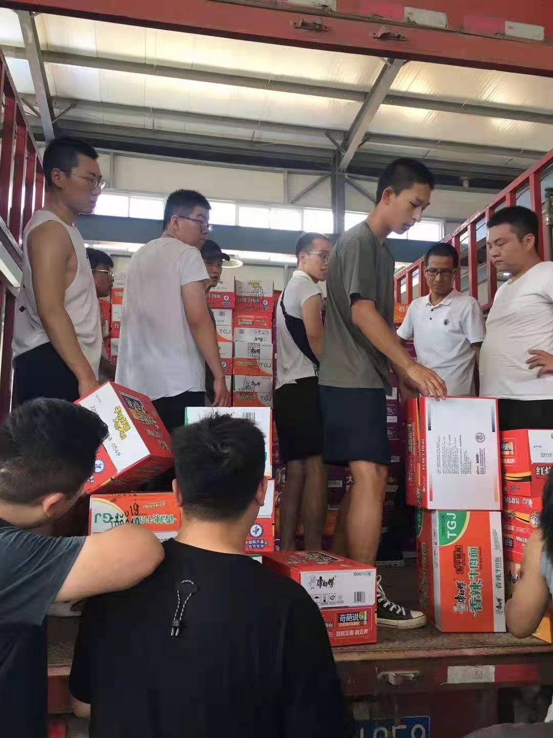 刘智醇在河南新乡市暴雨抗洪救灾活动中,在辉县市教体局的组织下,在辉县市人民武装部和步云公司厂房等地方做志愿者活动,协助搬卸救援物资,并分发给受灾群众。