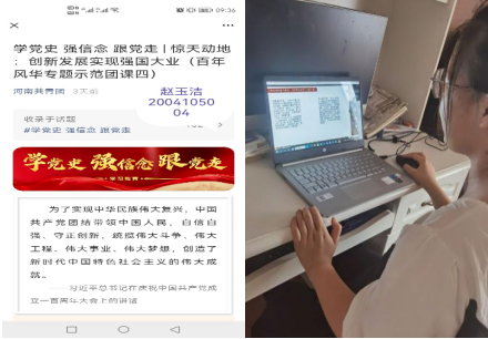 8月25日,制药工程20-1团支部在线开展主题团日活动,团支部书记赵玉洁主持。赵玉洁带领支部成员进行理论学习,学习了党章、《共产党宣言》的部分内容,紧接着要求大家自主学习青年大学习——惊天动地:创新发展实现强国大业(百年风华专题示范团课四)。之后,学习了学院推出的“把疫情汛情当教材 与祖国共成长”之辅导员和学生说,邀请参加疫情汛情防控志愿服务的团员代表发言,使支部成员深刻意识到,作为青年一代,要敢于承担起社会责任,服务群众,无私奉献,才是对社会最好的回报!