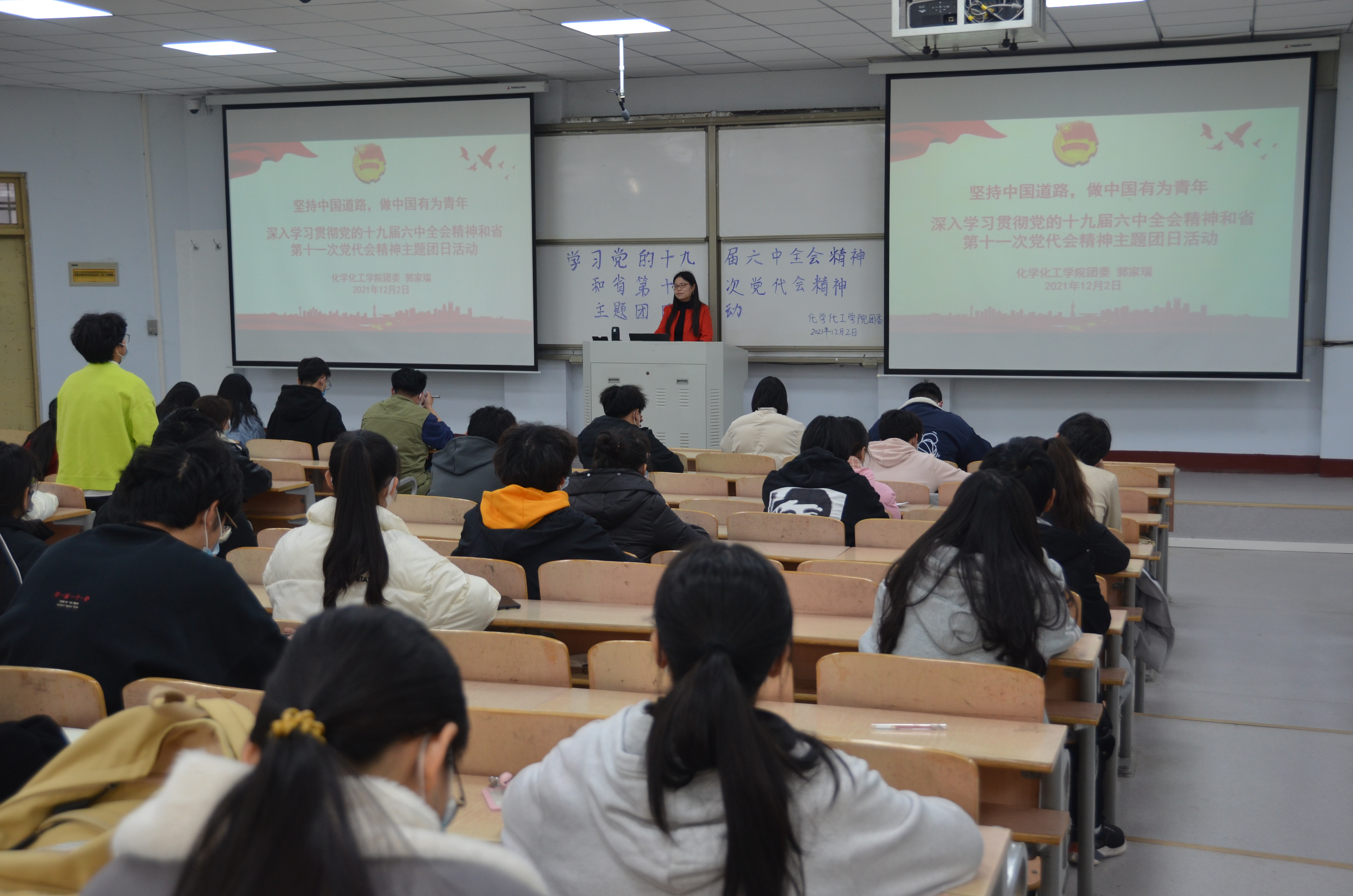 12月2日,beat365英国官网网站团委于睢阳校区1号教学楼106教室开展“党的十九届六中全会精神宣讲”活动。院团委副书记郭家瑞主持,学院第五期青马培训班全体学员参加。