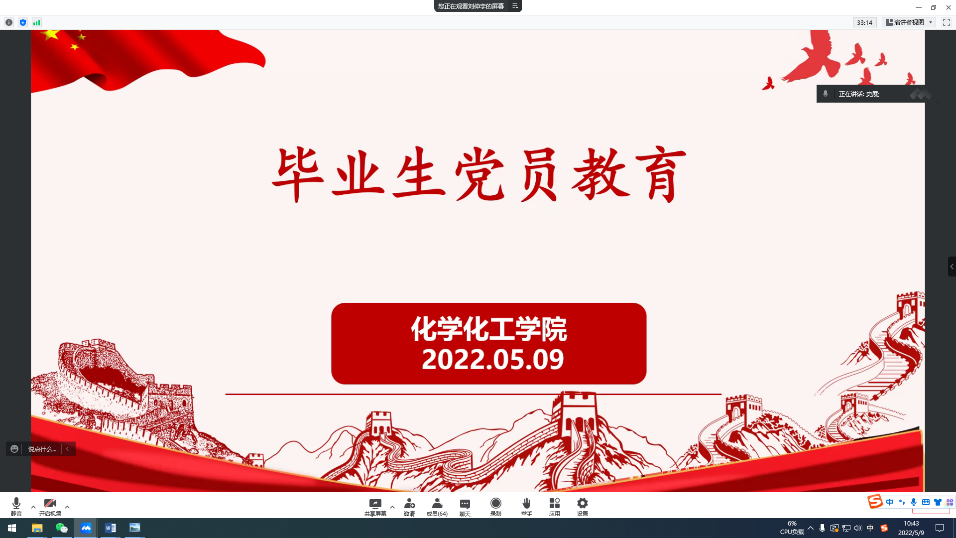 为做好2022届毕业生党员组织关系转移工作,beat365官网于2022年5月9日,在腾讯会议召开毕业生党员教育会议,毕业班辅导员史展主持,2022届全体毕业生党员参加。