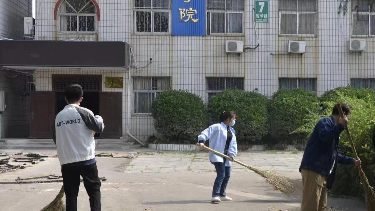 活动伊始,负责人王雅青先清点人数,之后进行分组和分配劳动工具。在清扫过程中,各小组成员间配合默契,用心完成此次任务。学生党员们不怕苦不怕累,齐心协力完成清扫工作,经过大家的努力,校园面貌焕然一新。