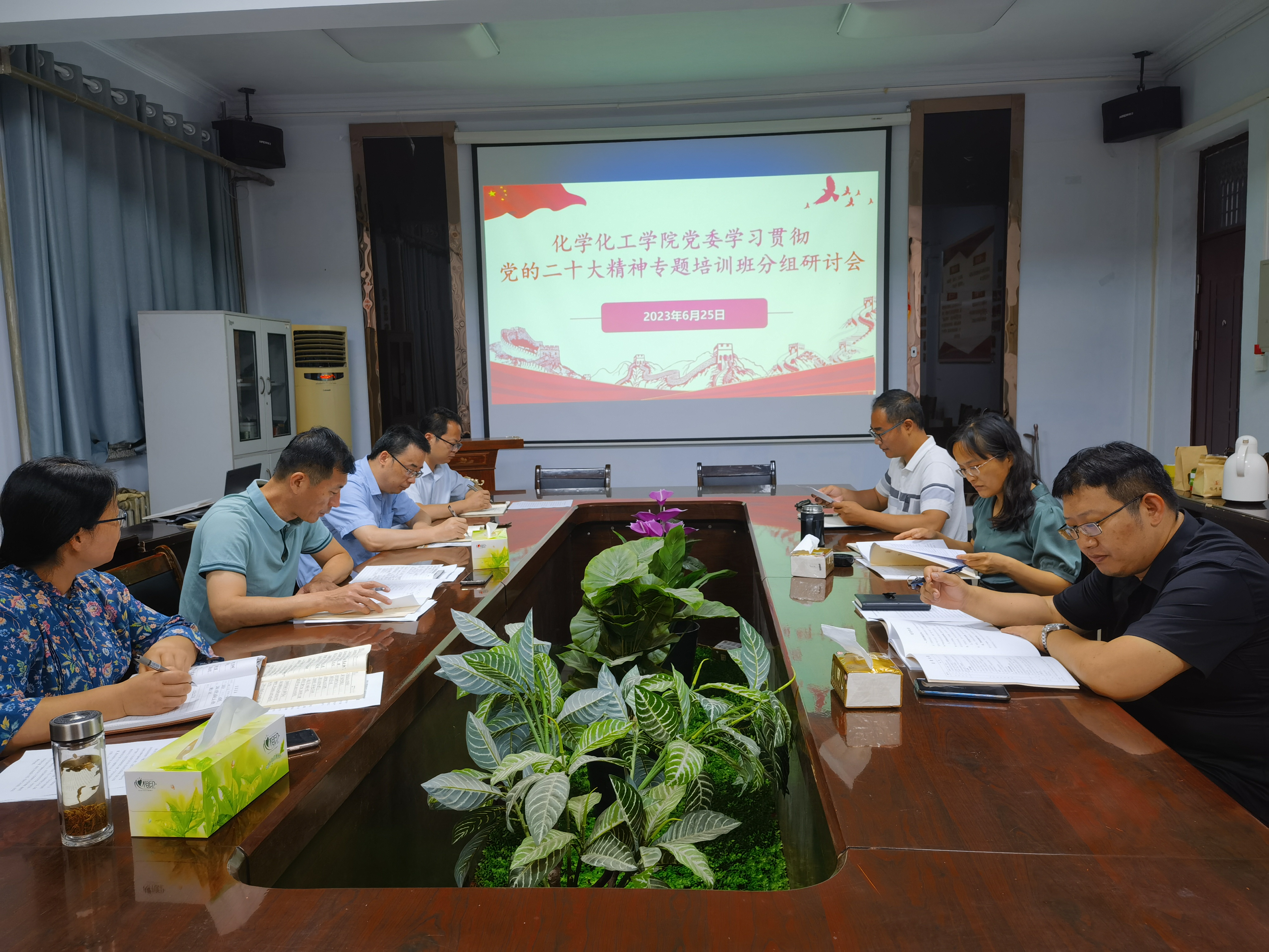 6月25日上午,beat365英国官网网站在睢阳校区7号楼会议室召开党委理论学习中心组学习研讨会议,暨学习贯彻党的二十大精神专题培训班分组研讨会和6月份理论学习中心组学习研讨会,学院理论学习中心组成员出席,会议由党委书记李海涛主持。