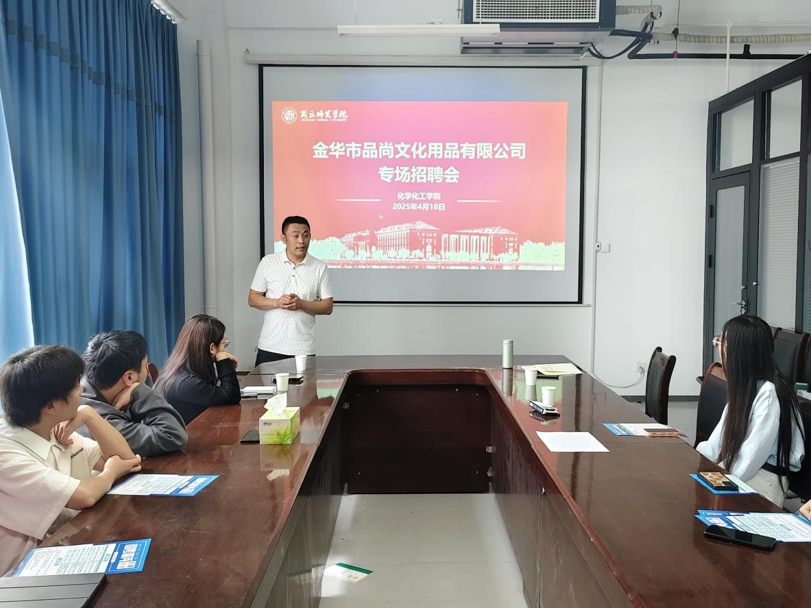 为搭建企业与高校人才交流的优质平台,助力毕业生实现高质量就业,4月18日下午,beat365英国官网网站邀请到河南瑞柏新材料有限公司、金华市品尚文化用品有限公司两家企业到学院为2025届毕业生进行就业宣讲,此次会议由2025届毕业班辅导员郭家瑞主持。