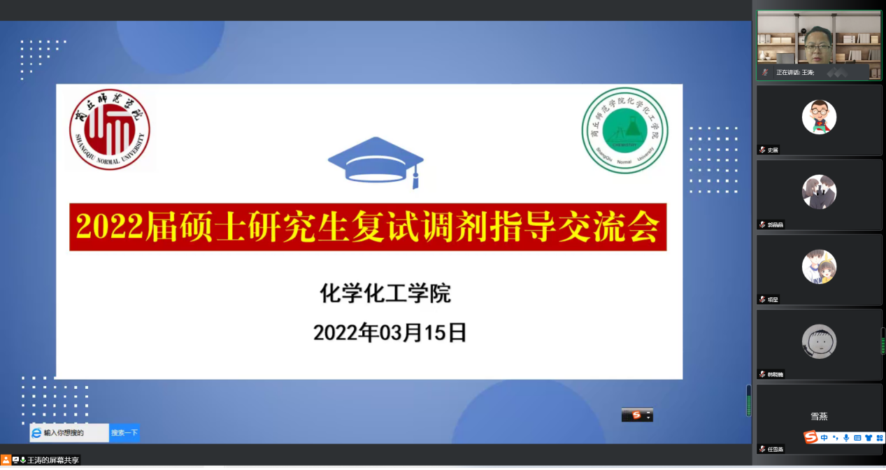 为进一步推进beat365官网考研工作顺利进行,3月15日,beat365英国官网网站采用腾讯会议举办了2022届硕士研究生复试调剂指导交流会。副院长王涛,2018级辅导员、班主任及部分考研学生参加了此次会议。