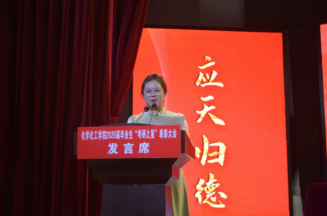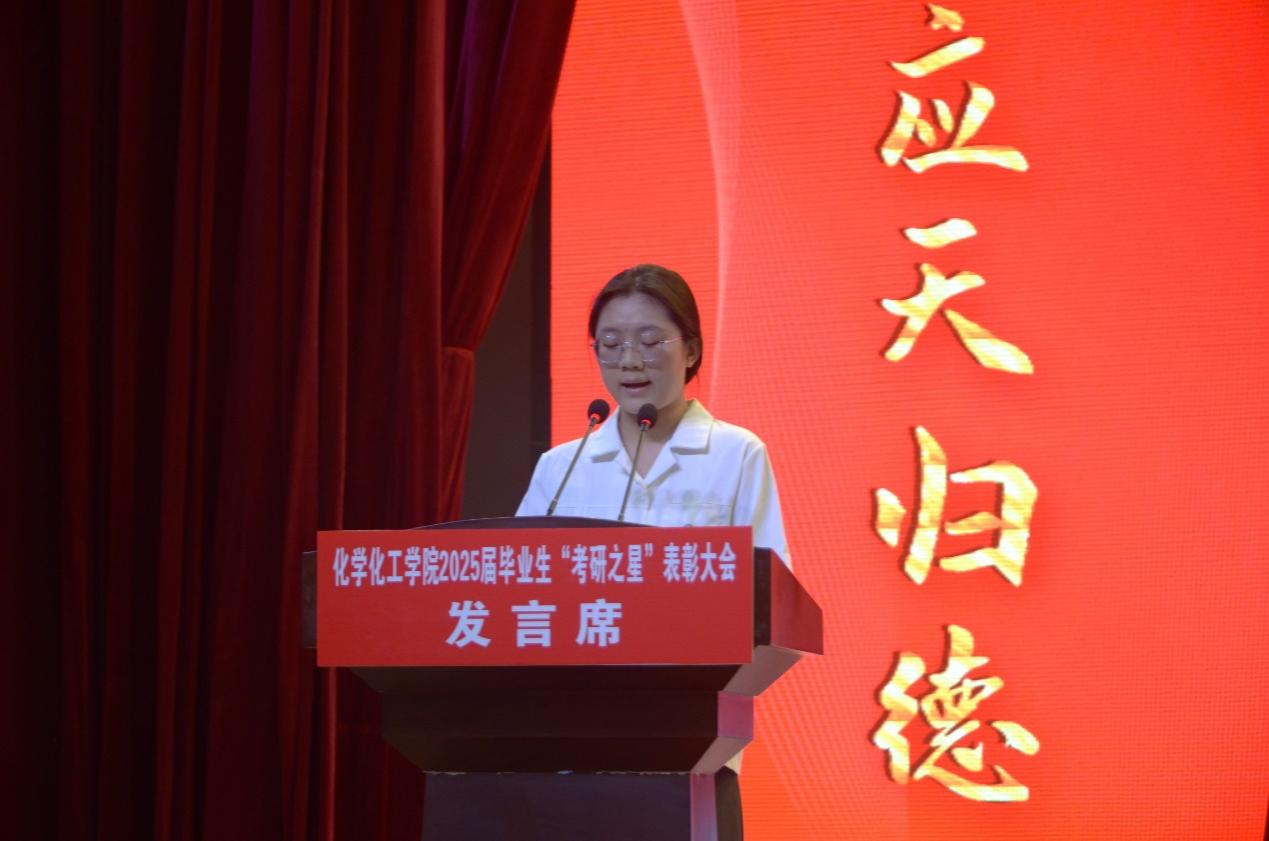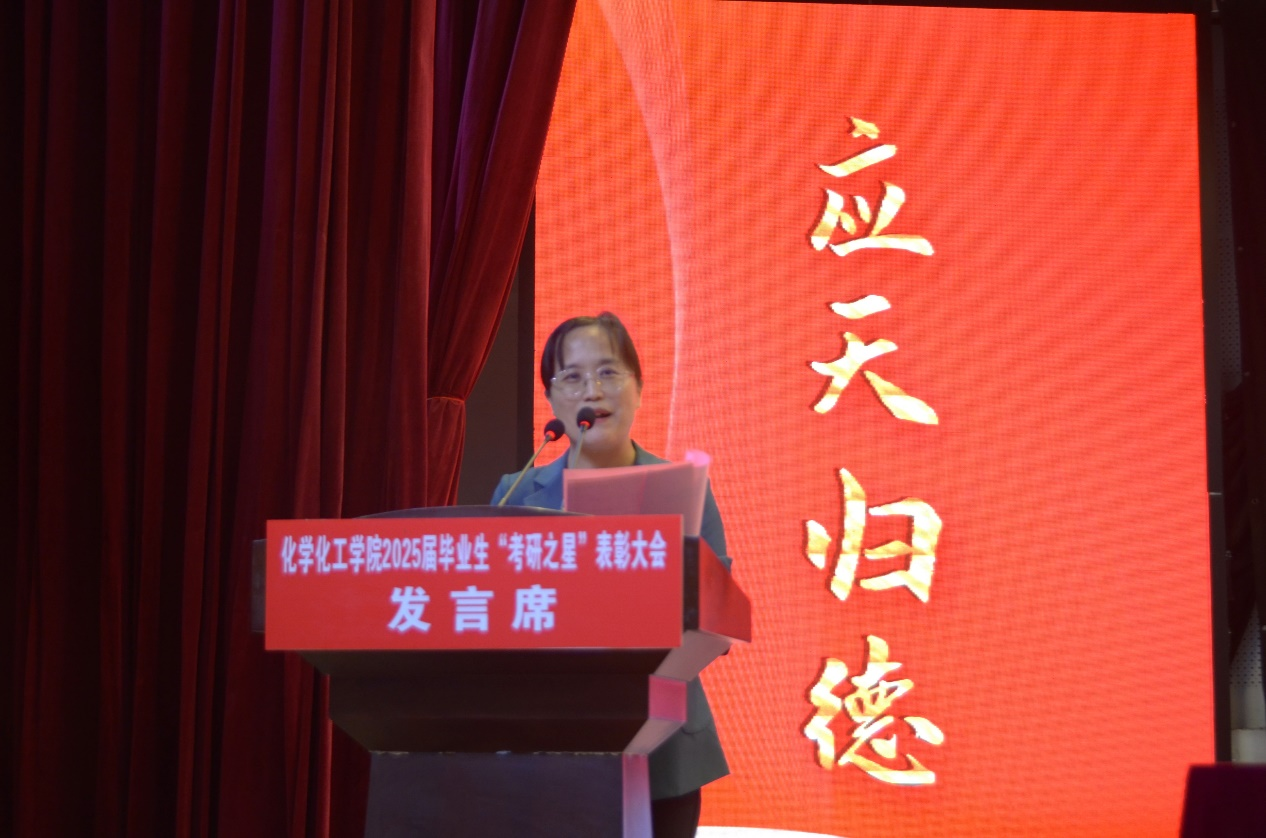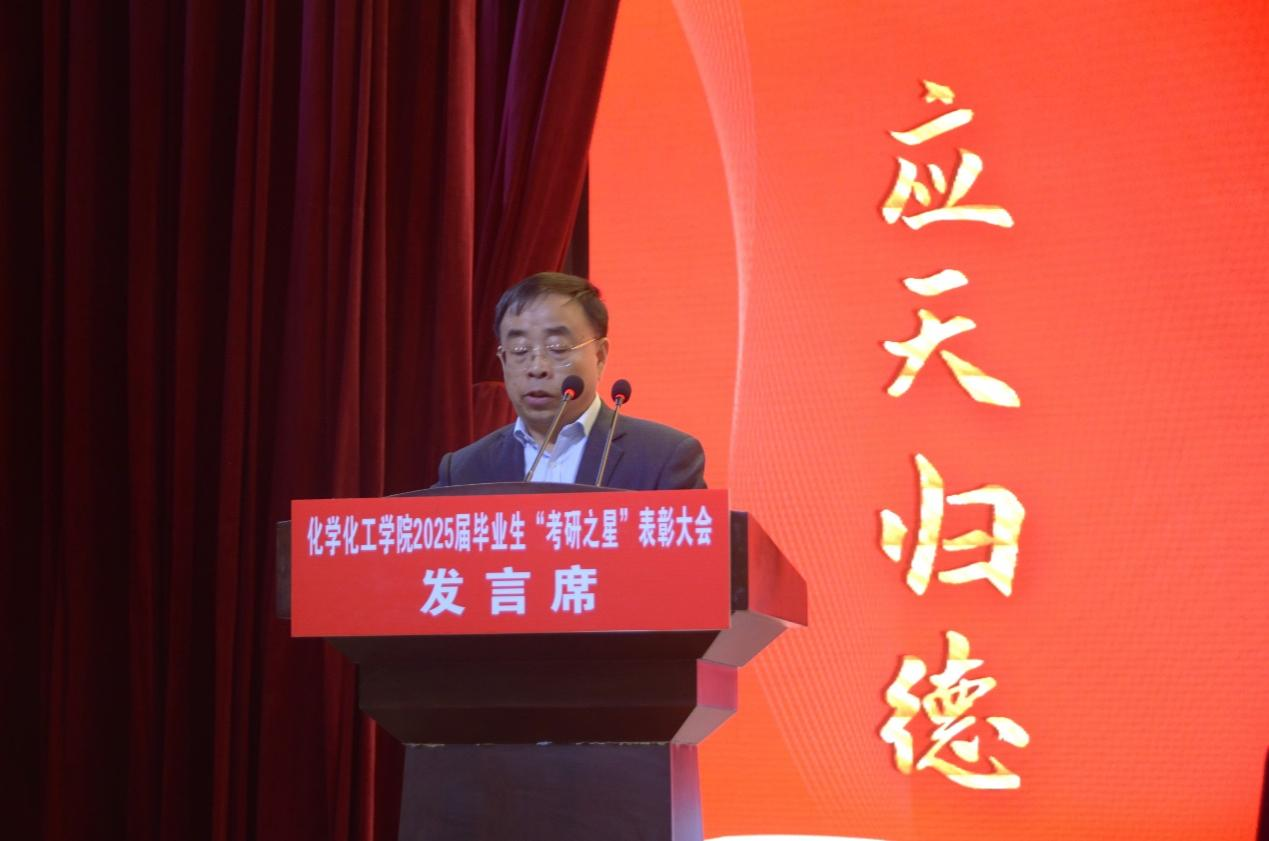 表彰大会在庄严的国歌声中拉开序幕。学生处处长韩坤首先宣读了化工学院关于表彰2025届毕业生“考研之星”及2025年“考研先进班集体”的决定。随后,主席台领导为“考研之星”代表和“考研先进班集体”代表颁奖。