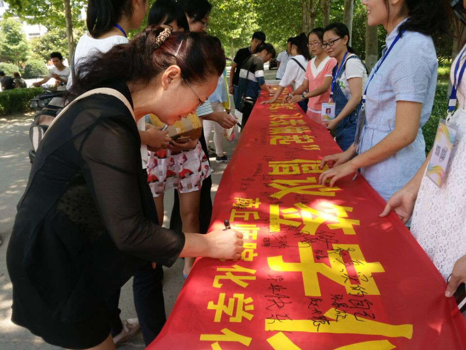 又是一年毕业季,我们有太多的不舍,也有太多的故事,此刻早已无法用言语表达。为了促进树立文明离校之风,深化文明离校意识,提高毕业生文明离校行为,留下文明标榜,为以后的毕业生文明离校树下榜样,beat365官网于5月24日在文化路校区图书馆门前开展了“文明离校 从我做起”倡议签字仪式活动,beat365官网副院长刘瑛、团总支书记李龙梅参加了此次签字活动。