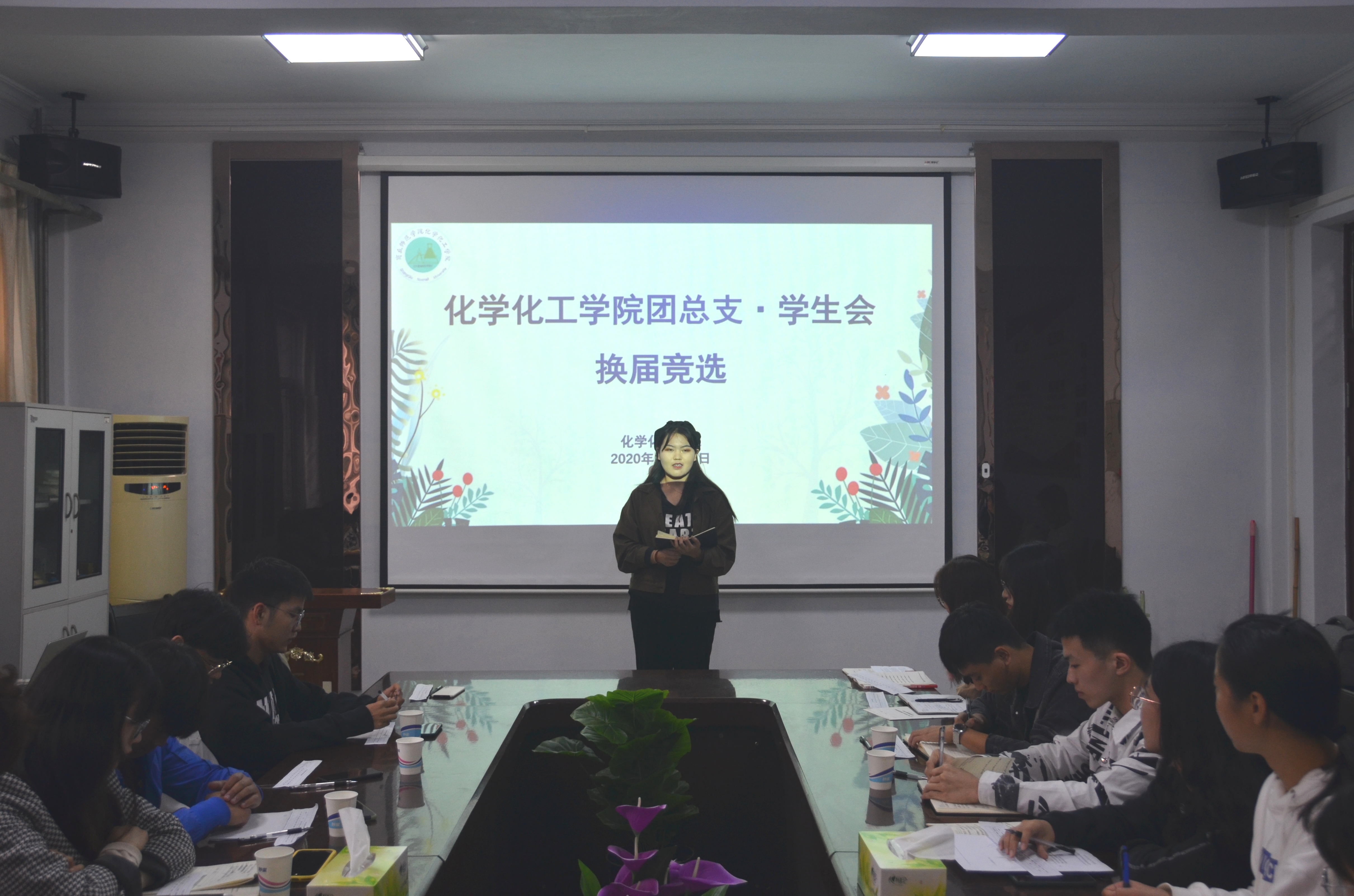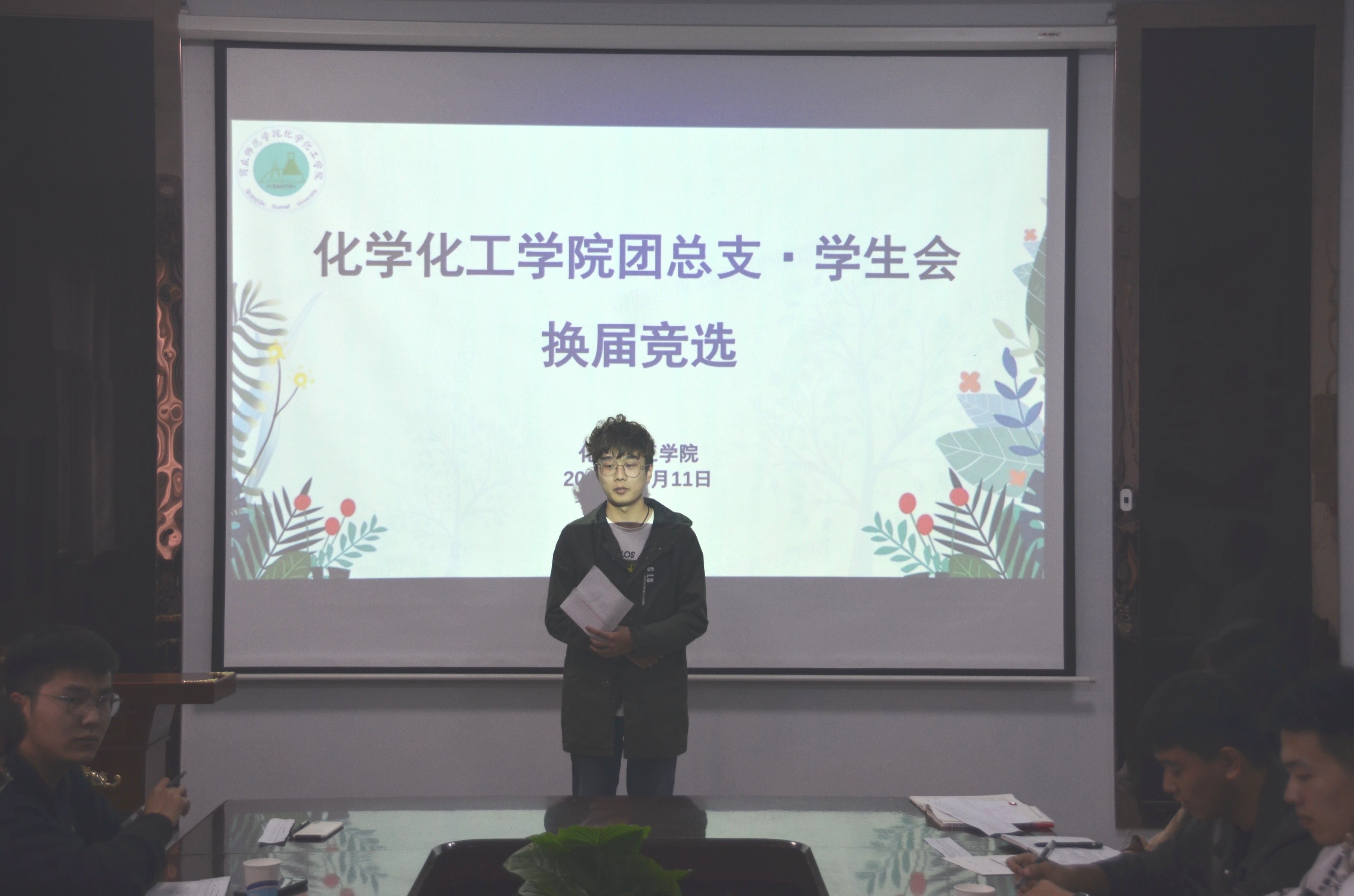 会上,魏世民就学生会改革相关事项进行了解释和说明,包括学生会校级与院级改革人数、职称改变、新增志愿者部并将其与社团部、新媒体中心一同划为团总支、“学代会”由三年一届改为一年一届等几方面具体的改革方案。接着,开始换届竞选演讲,各位竞选者做了自我介绍后分别讲述他们对竞选职位的认知、对未来的工作规划、对学生会未来发展的规划等。