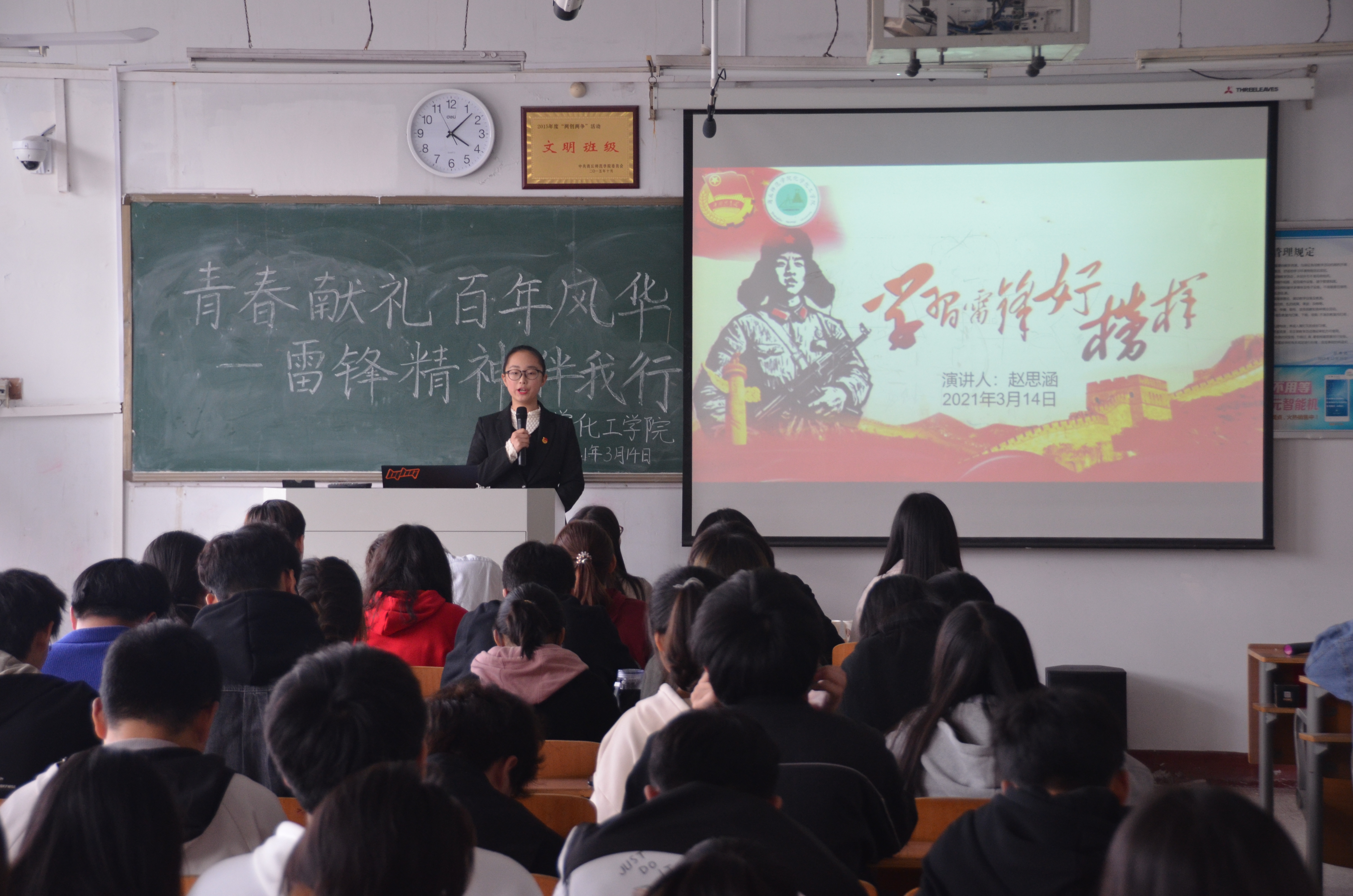 为学习雷锋精神,弘扬中华传统美德,践行社会主义核心价值观,增强学生的无私奉献意识,展现当代大学生良好精神风貌。3月14日下午,beat365英国官网网站于睢阳校区1号教学楼408教室举行了“青春献礼,百年风华——雷锋精神伴我行”主题演讲比赛,团总支副书记郭家瑞出席此次演讲比赛。