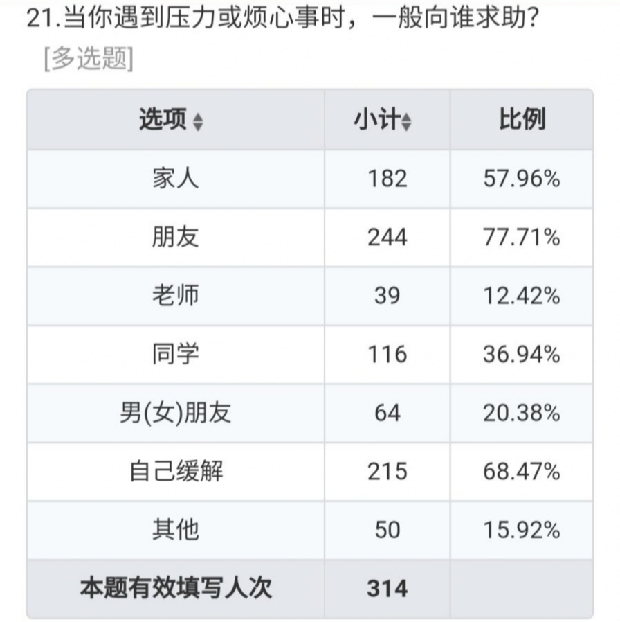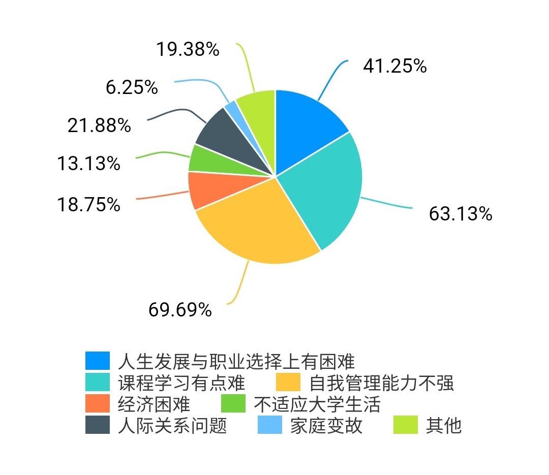 本次问卷调查采取随机抽样调查的方式,从beat365英国官网网站18、19、20级学生中抽取一部分为代表反映整体调查情况,面向现代大学生学业和生活方面的问题进行调查。调查显示,部分同学对自己以后的生活或学业会产生焦虑,当遇到压力或烦心事时向老师求助较少而更多的是选择自己缓解,且常会有自我管理能力不强、课程学习有点难、人生发展与职业选择上有困难等诸多烦扰。根据调查分析得知,将近半数大学生希望得到一对一心理咨询、网络心理咨询等心理健康服务方式。