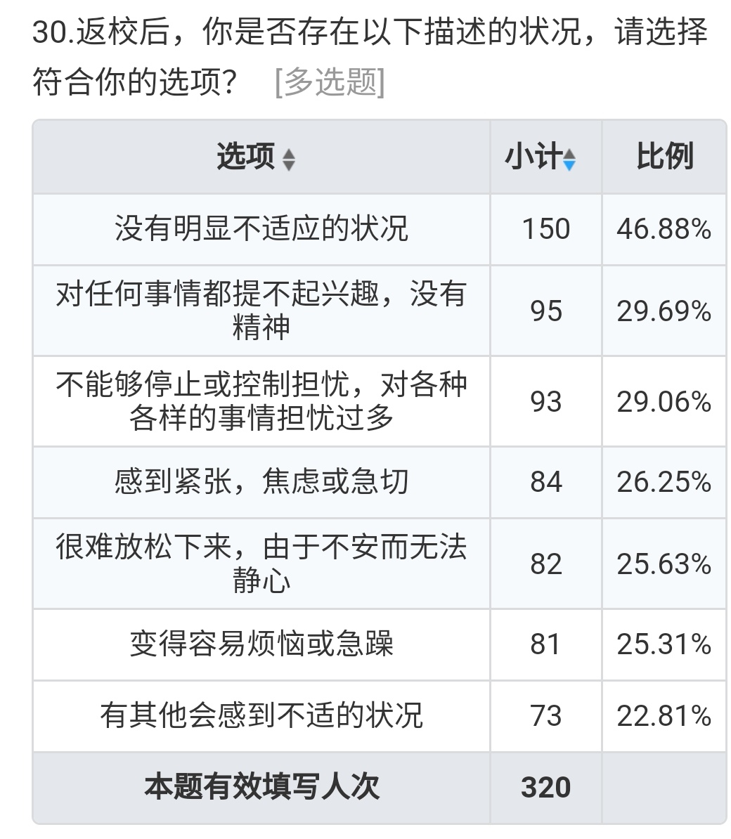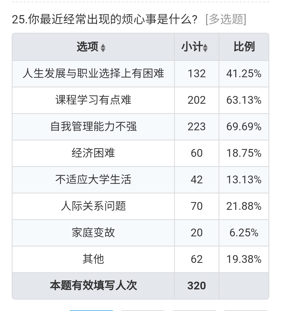 通过本次调查活动的开展,同学们对心理健康问题有了一定的了解。大学校园在一定程度上也是复杂社会的缩影,任何事情都不是一帆风顺的,经历坎坷与挫折是不可避免的,只有正视自己存在的问题,树立良好的心态,才能更好的实现自己的人生价值。