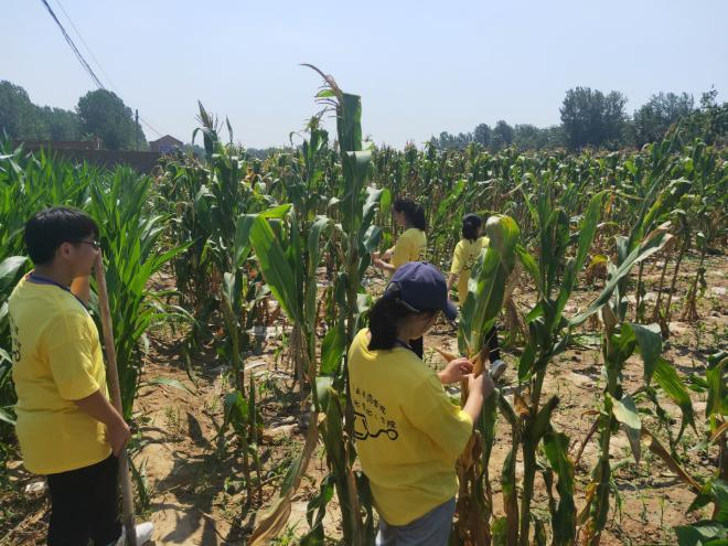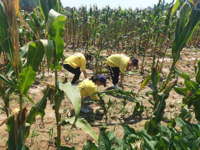 玉米种植是普通农户的基本收入来源,但因杂草丛生,导致玉米生长受碍,可能影响来年收入。实践团成员积极调研、实地考察,在掌握玉米生长的实际情况后,与当地农民积极开展玉米除草工作。在农民细心地指导下,实践团成员学会了辨识玉米幼苗与杂草,掌握快速除草的技巧。尽管烈日炎炎,但此次除草活动依然顺利开展。当地农民对实践团成员给予了高度评价,肯定了其吃苦耐劳、乐于实践的精神。