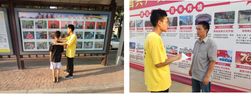 8月7日,来自新乡市辉县的实践团成员陈巍天开展了实践活动。先是在社区文化广场开展了群众党史学习教育积极性调研活动,为了更好的了解群众对于党史教育的积极性,该成员以“一对一”的方式进行访谈。之后在公交车站牌处积极引导群众学习站牌处的光荣榜,宣传抗战老兵的英雄事迹,发挥光荣榜的作用。最后该成员还奔赴耿风泉实物展览馆参观学习。
