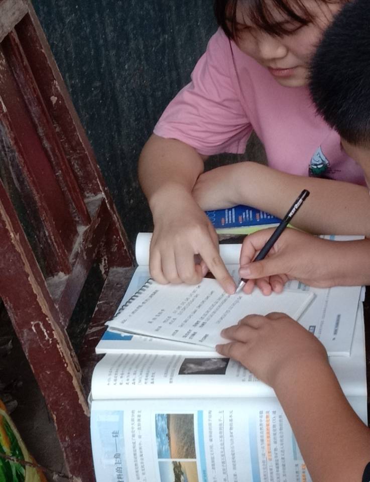 关爱留守儿童心理健康,陪伴就是最动听的话语。团队成员在活动中与孩子们一起解决他们学习中所遇到的困扰,帮助他们完成假期家庭作业。陪他们一起看动画片舒缓压力,一起玩耍。教中学生学生学习国际音标,帮助他们解答高中学习问题,制作他们的一些暑假假期学习计划,用所学知识解答他们在生活上与学习中所遇到的一些问题。