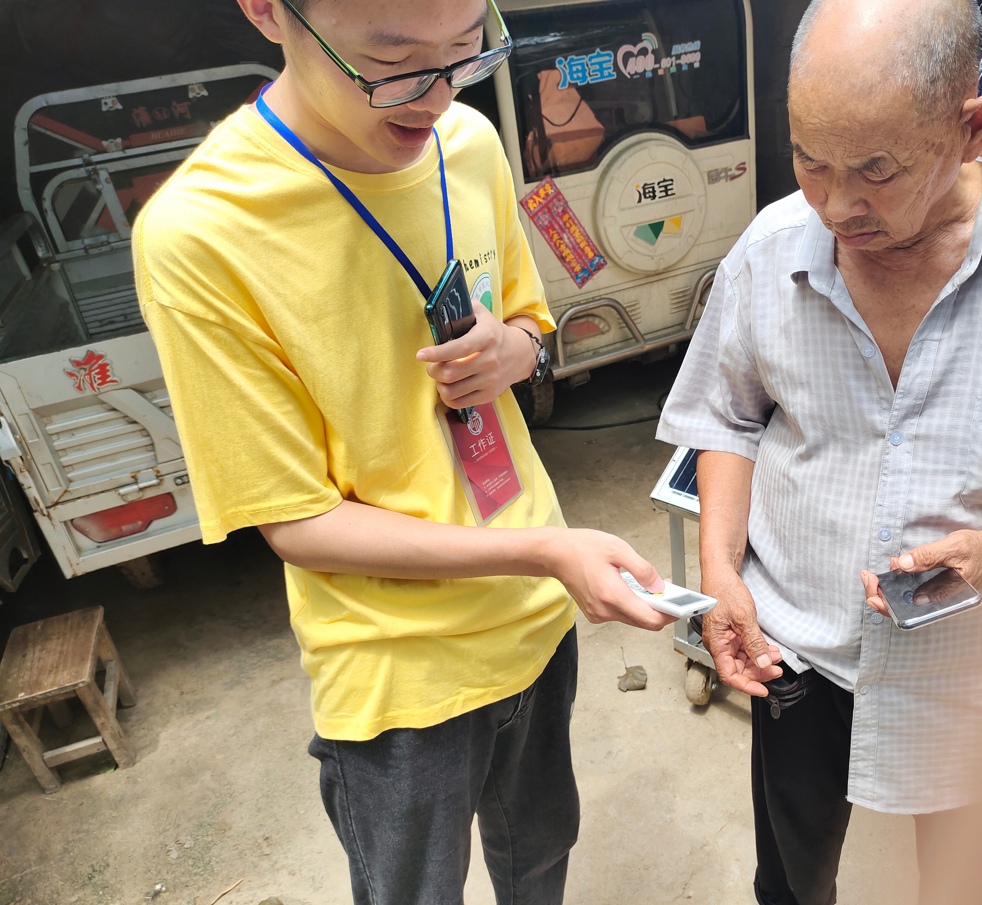 随着智能手机与支付宝支付方式的普及,老年人不会使用智能设备,使得他们的生活不是很便利。团队成员李家印同学实践中为老年人们讲解如何用智能手机指纹解锁、面部识别解锁、使用支付宝付款码购物付款、支付宝扫健康码等,希望智能设备不光便利年轻人的生活,让老年人也可以生活无忧。