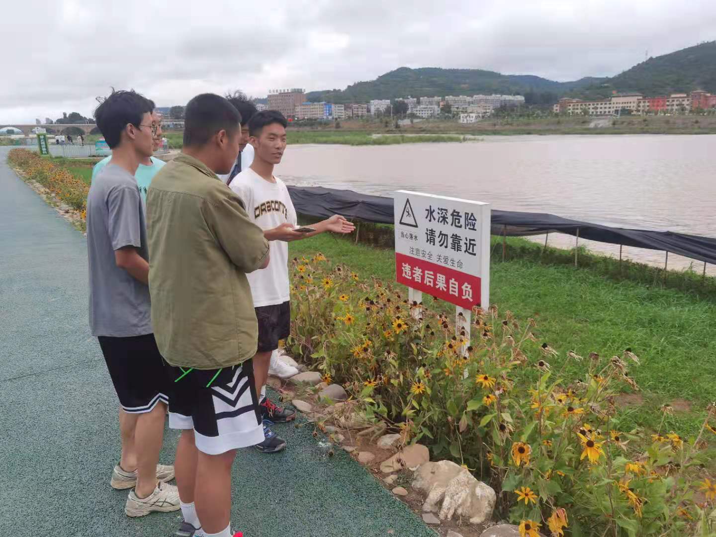 8月3日,beat365英国官网网站赴社会治理实践团的两名成员在河南省三门峡市卢氏县以坝带路洛河的一处社区中,开展汛期安全活动。