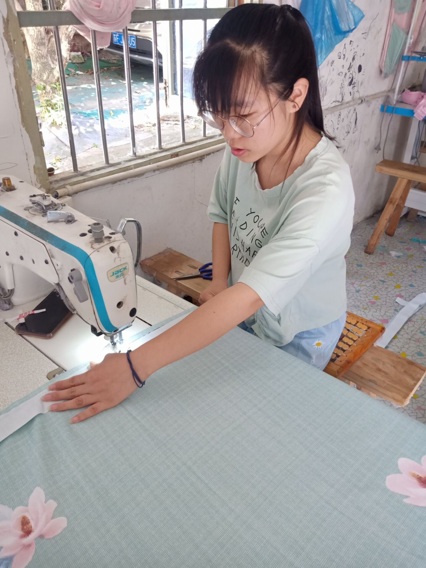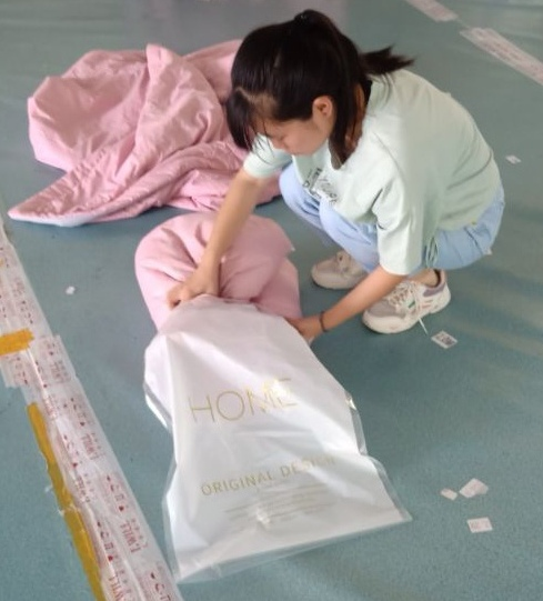 7月23日,团队成员天亚茹于江苏省一工坊进行乡镇企业安全生产调查与体验工作。她不仅体验了床被的折叠和包装,床单的裁剪和缝纫等工作,也体会到了不同岗位工作的繁忙与辛苦。同时她发现工厂与过去相比在环境方面有较大改善,也增加了许多安全设施,工厂的生产状况越来越好,当地居民的生活也得到了改善。