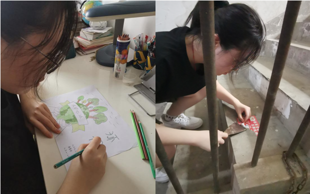 7月20日,团队成员唐馨雨于安徽省一社区开展提高居民环保意识活动。唐馨雨利用空闲时间对街道进行清扫、清理广告纸,同时手绘环保主题宣传画,一方面吸引他人注意,另一方面让更多人了解保护环境的意义。此次活动,唐馨雨不仅切身体会到保护环境的重要性,也用自己的方式影响他人,提高了居民的环境保护意识。