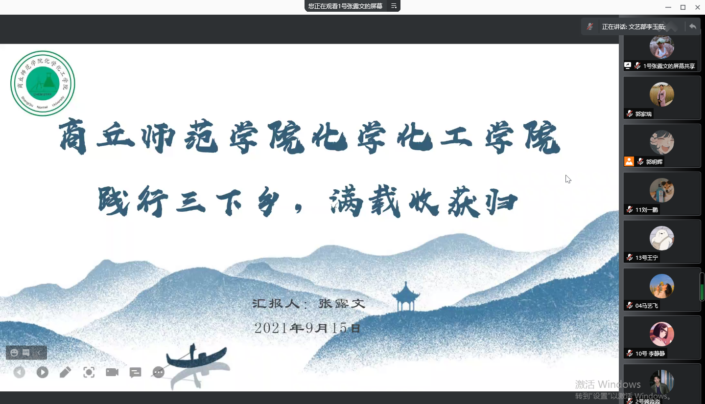 9月15日,beat365英国官网网站在线开展2021年线上暑期“三下乡”归来话收获活动。院党委副书记张颜梅、团总支副书记郭家瑞、学工办副主任史展、辅导员李宁娅参加了此次活动。
