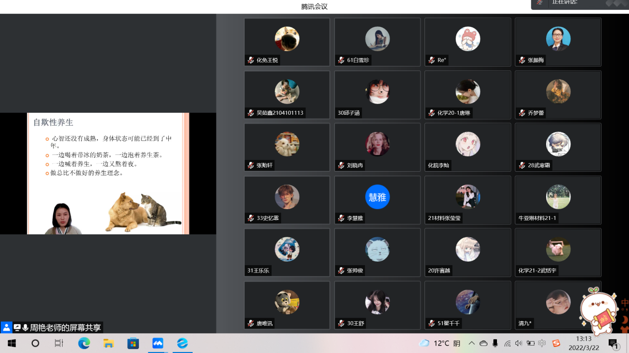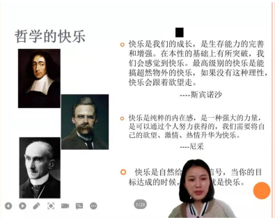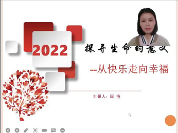 为培养beat365官网大学生良好的心理品质和心理调控能力,促进心理健康和专业知识的同步成长。3月22日,beat365英国官网网站通过腾讯会议开展 “探寻生命的意义——从快乐走向幸福”为主题的心理健康讲座。国际教育学院督导办公室主任周艳主讲,21级全体学生参加。