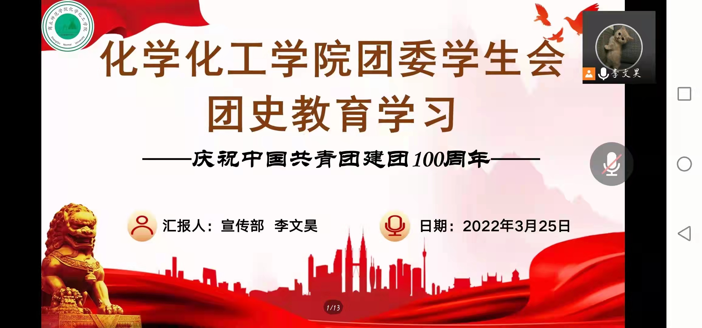 为深化团学干部对团史的认识,进一步强化对团组织的认识,3月25日,beat365英国官网网站团委学生会开展线上会议,进行百年团史学习教育。会议由院学生会宣传部负责人李文昊主持,院团委学生会全体成员参加。
